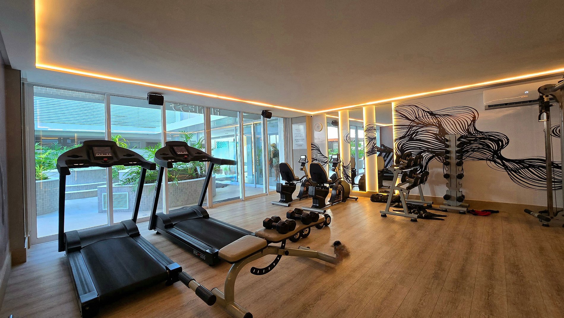 A academia de alto padrão e a portaria 24h reforçam a segurança e praticidade.