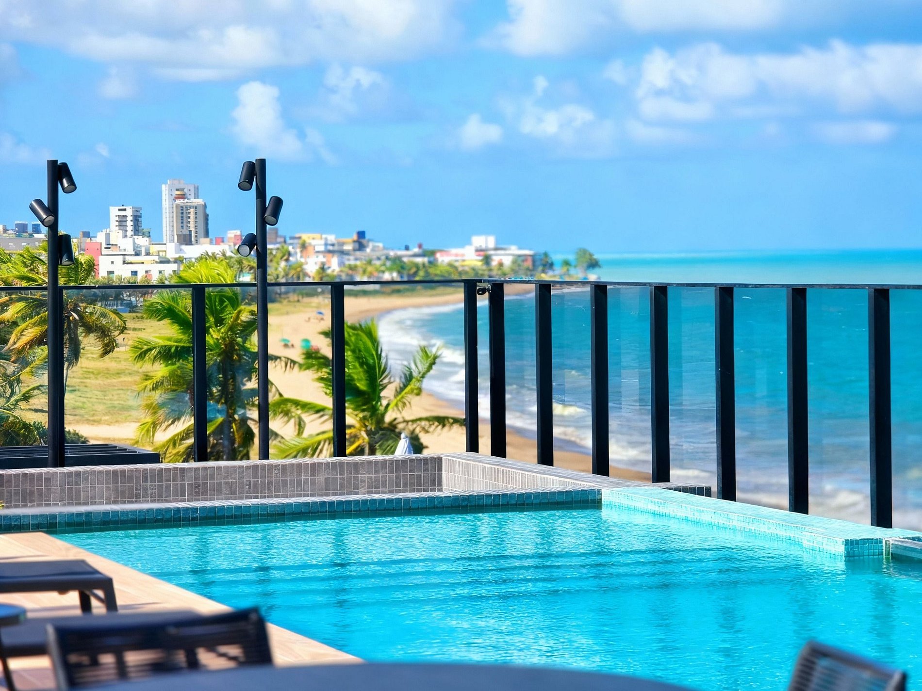 O prédio complementa a experiência com piscina panorâmica no rooftop, academia moderna, portaria 24h, estacionamento rotativo gratuito e check-in expresso, tudo para uma estadia sem preocupações.