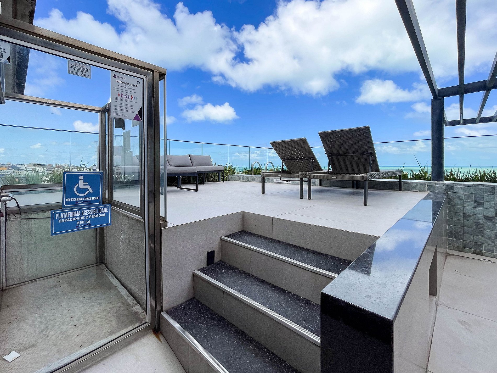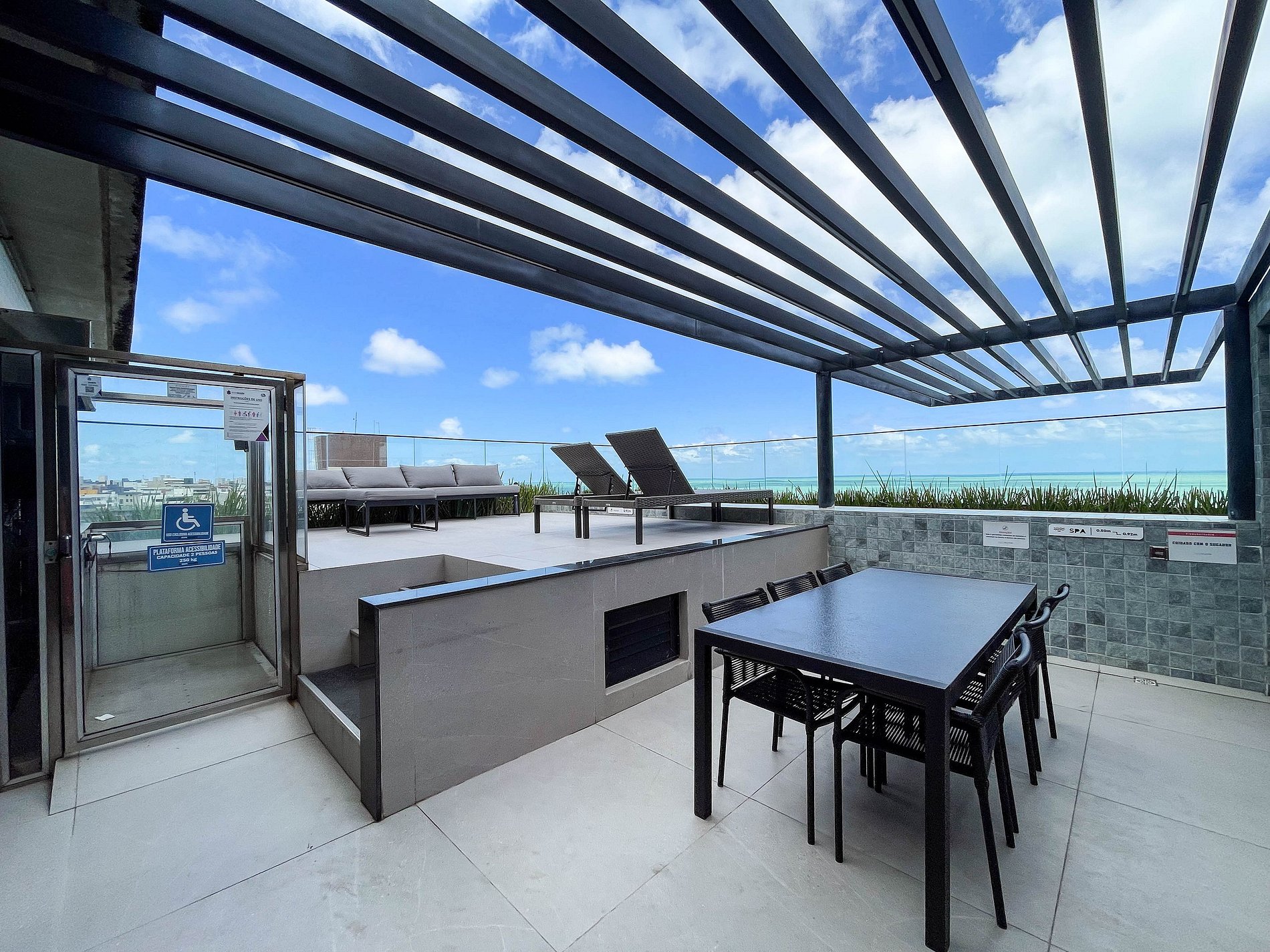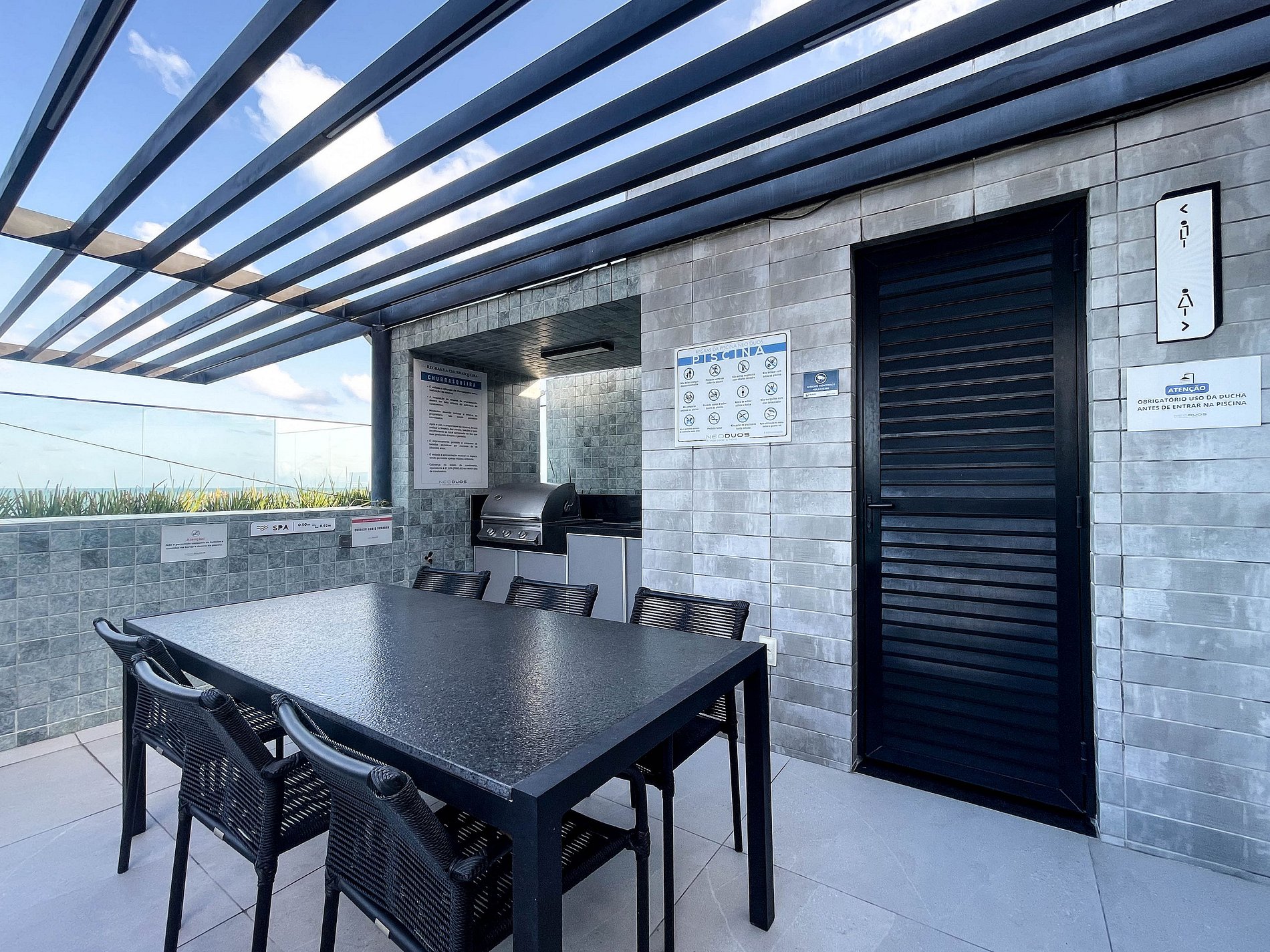 O prédio é novíssimo e impressiona logo na chegada. A área de lazer no rooftop revela uma piscina espetacular com vista para o mar, criando um espaço perfeito para relaxar ao fim do dia ou aproveitar o clima agradável da cidade. A portaria reforça a segurança e a tranquilidade durante toda a estadia, em uma região reconhecida por ser organizada, segura e valorizada.