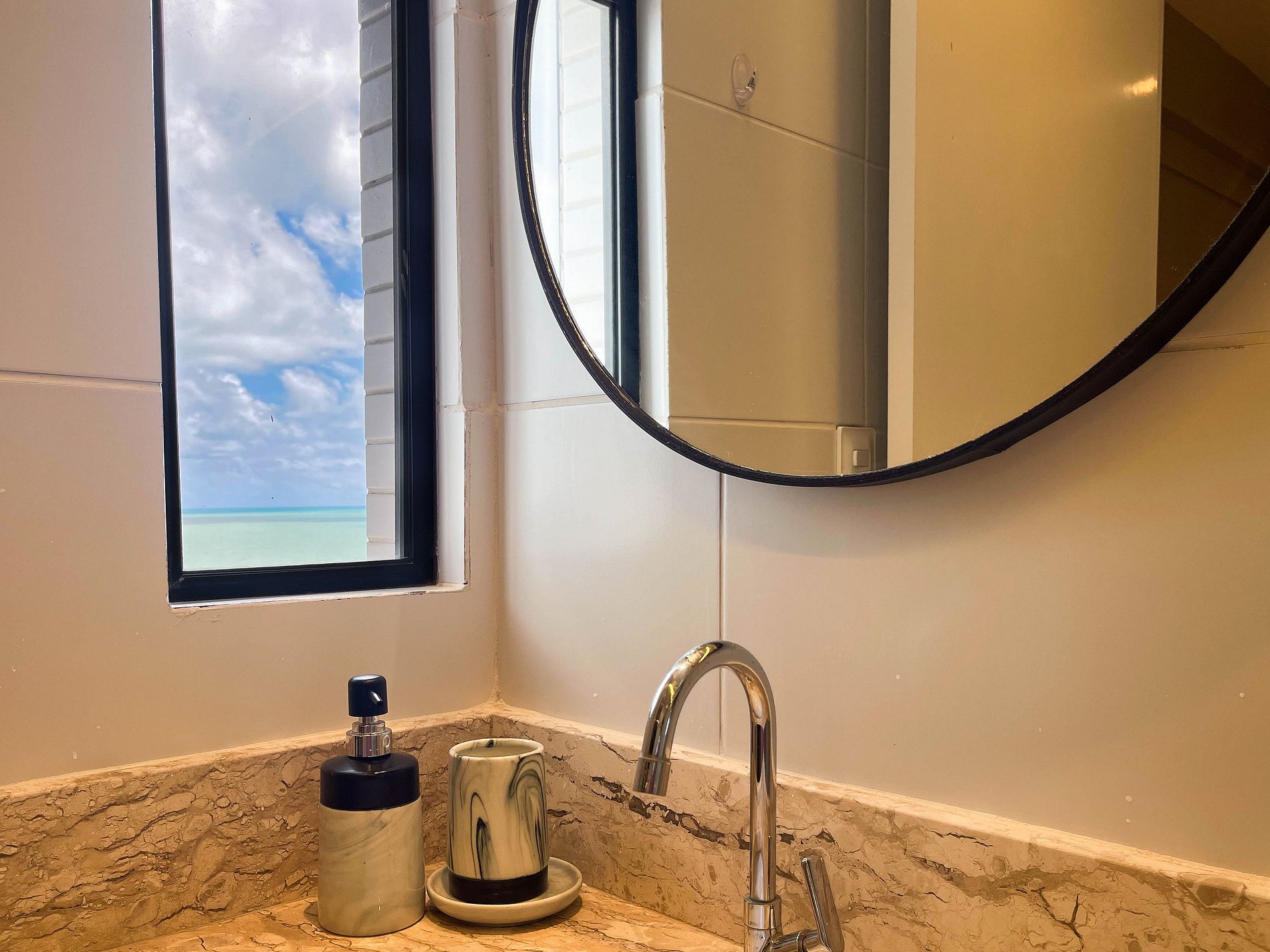 A localização é um dos grandes diferenciais. O prédio fica bem próximo do mar de Intermares, conhecido pelas águas quentes e tonalidade esverdeada, além de estar cercado por padarias, restaurantes, mercados e serviços essenciais — tudo acessível a poucos minutos de caminhada.