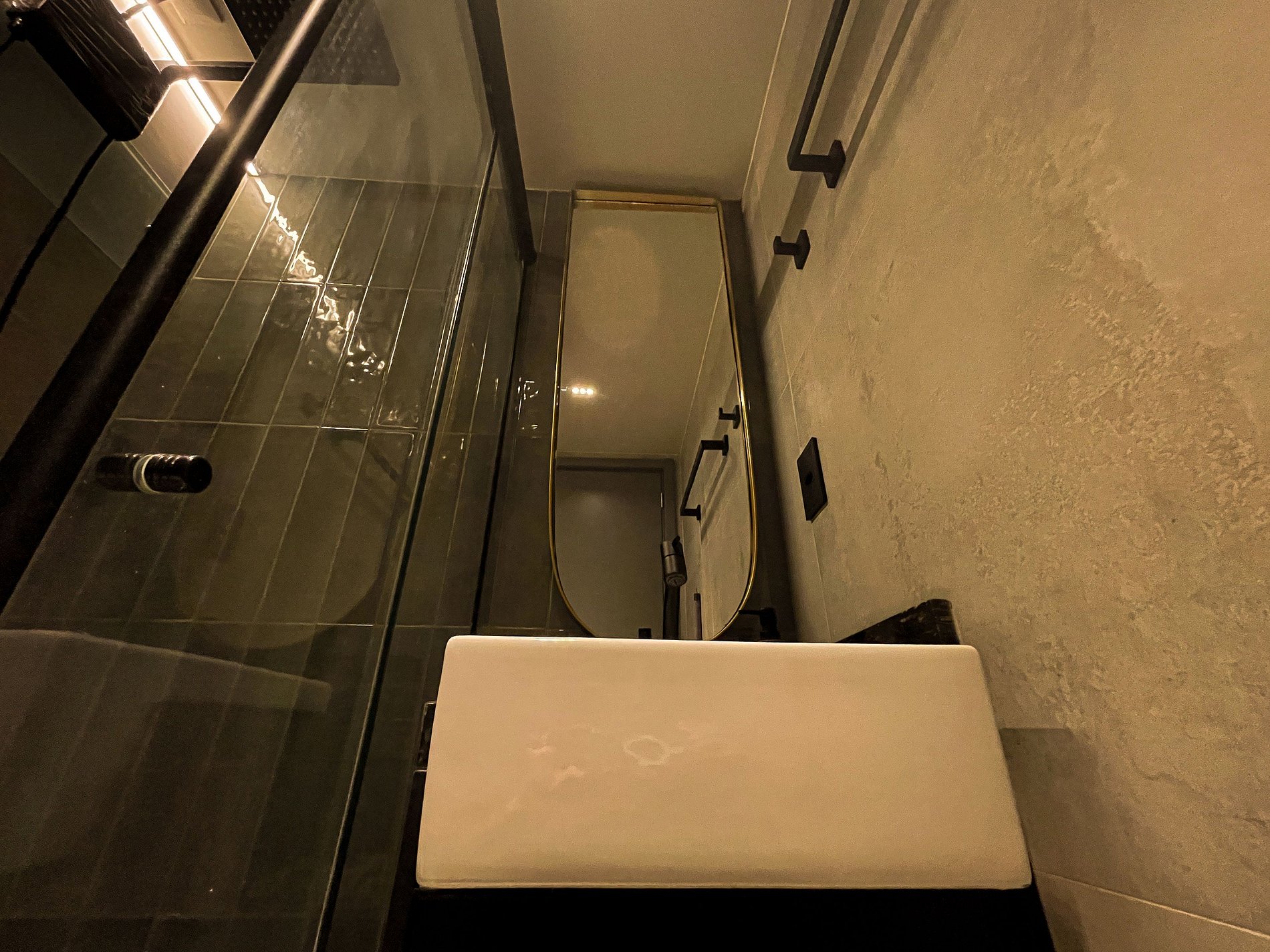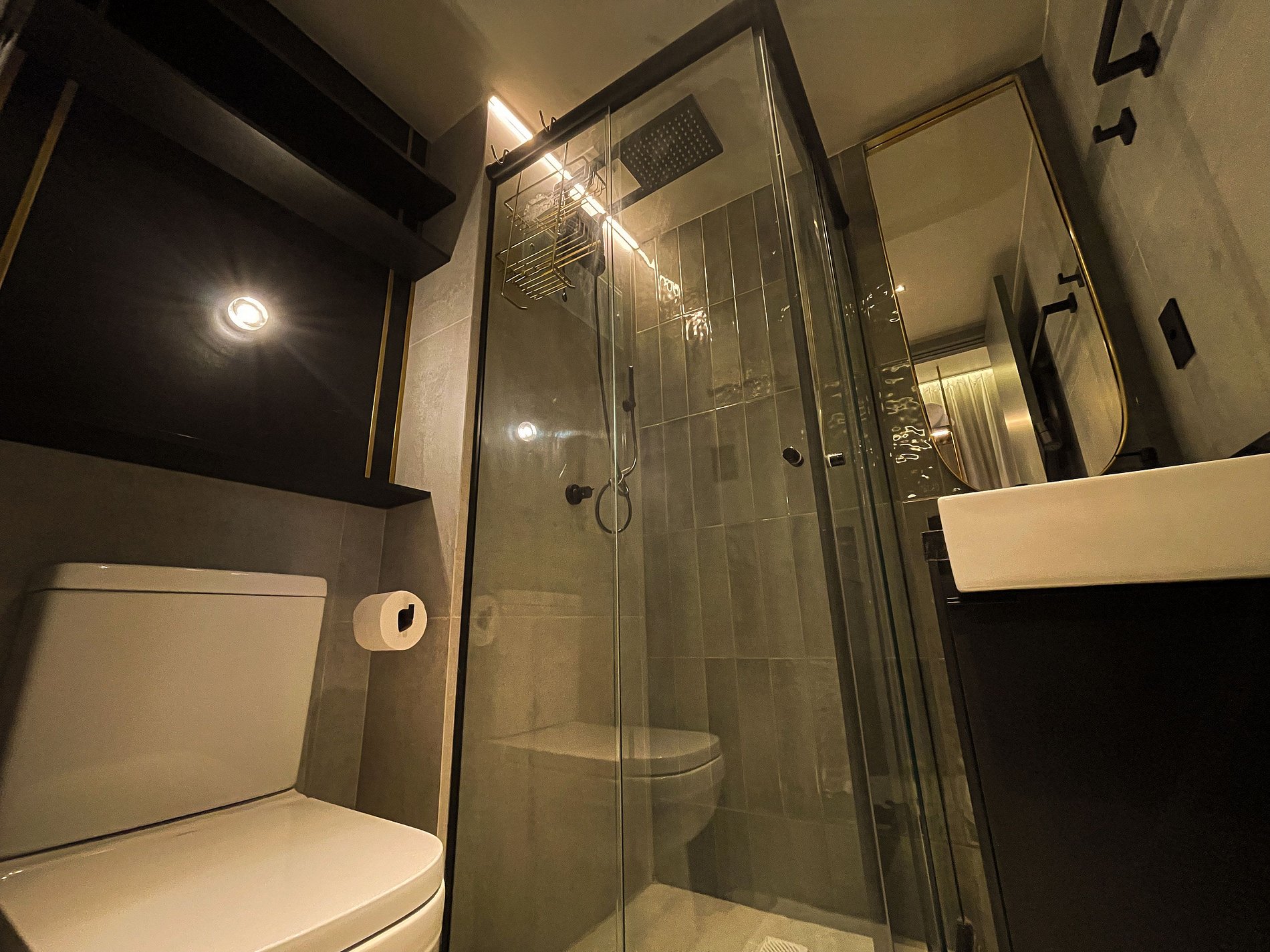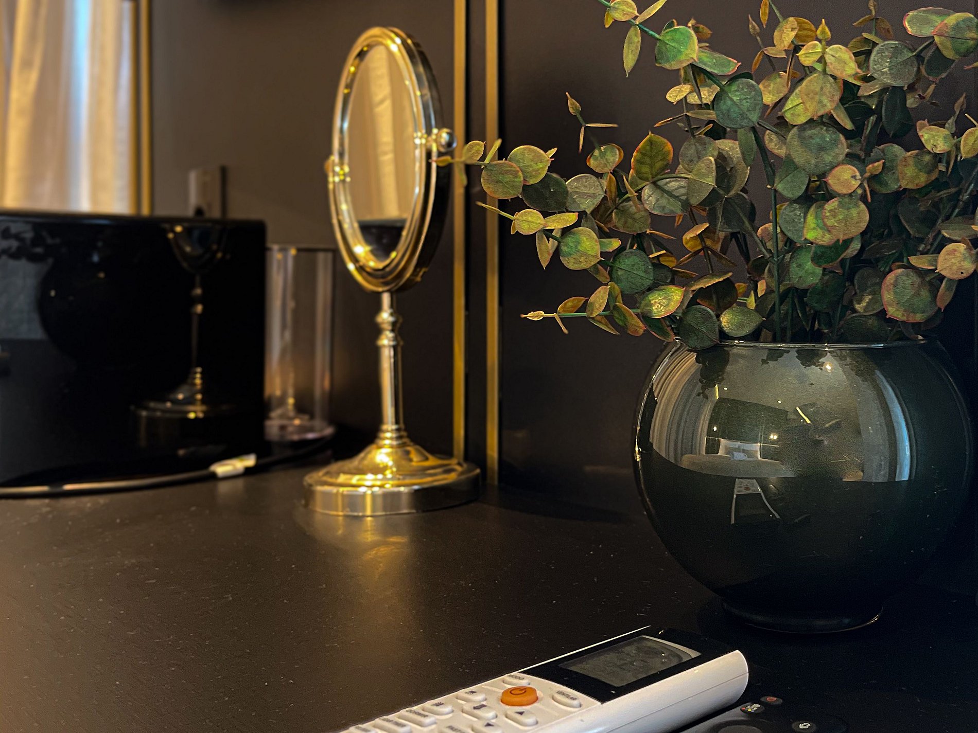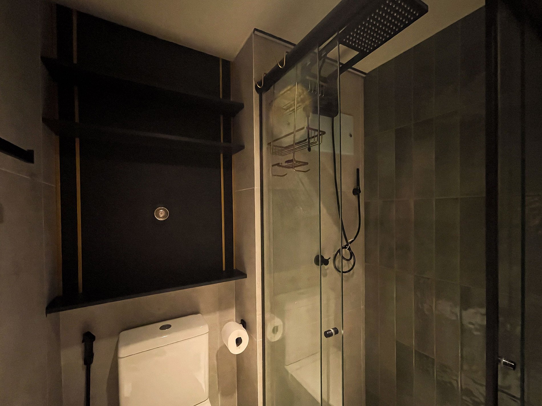 O studio é amplo, bem iluminado e transmite uma atmosfera de luxo discreto. A cama queen garante noites de descanso absoluto, enquanto o ar-condicionado e as cortinas blackout proporcionam conforto térmico e silêncio.