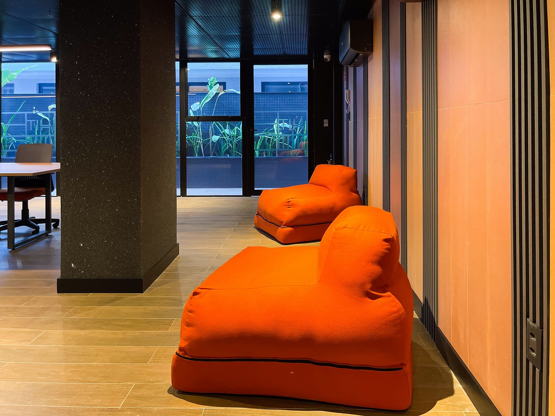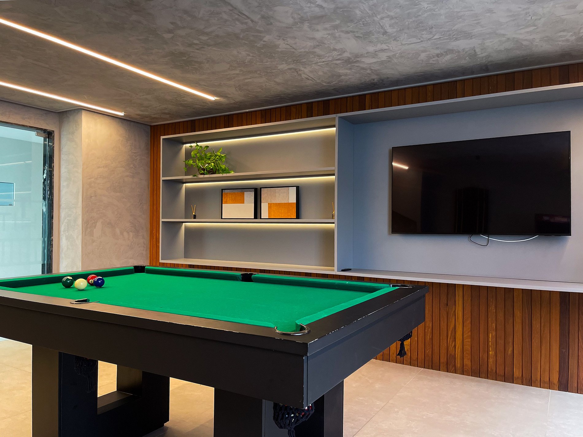 A TV e o Wi-Fi estável completam o ambiente, atendendo tanto momentos de lazer quanto quem precisa manter alguma rotina profissional.