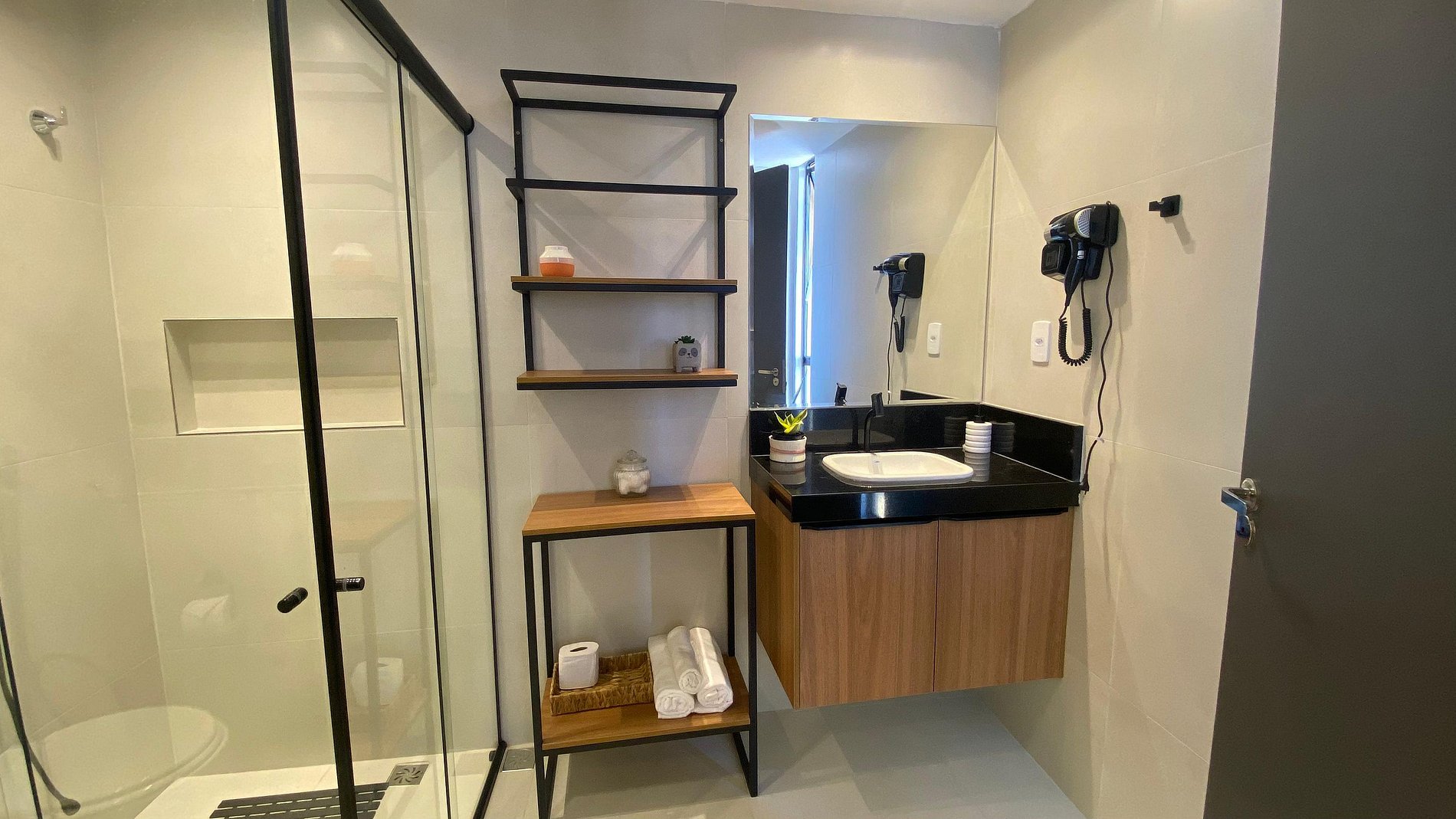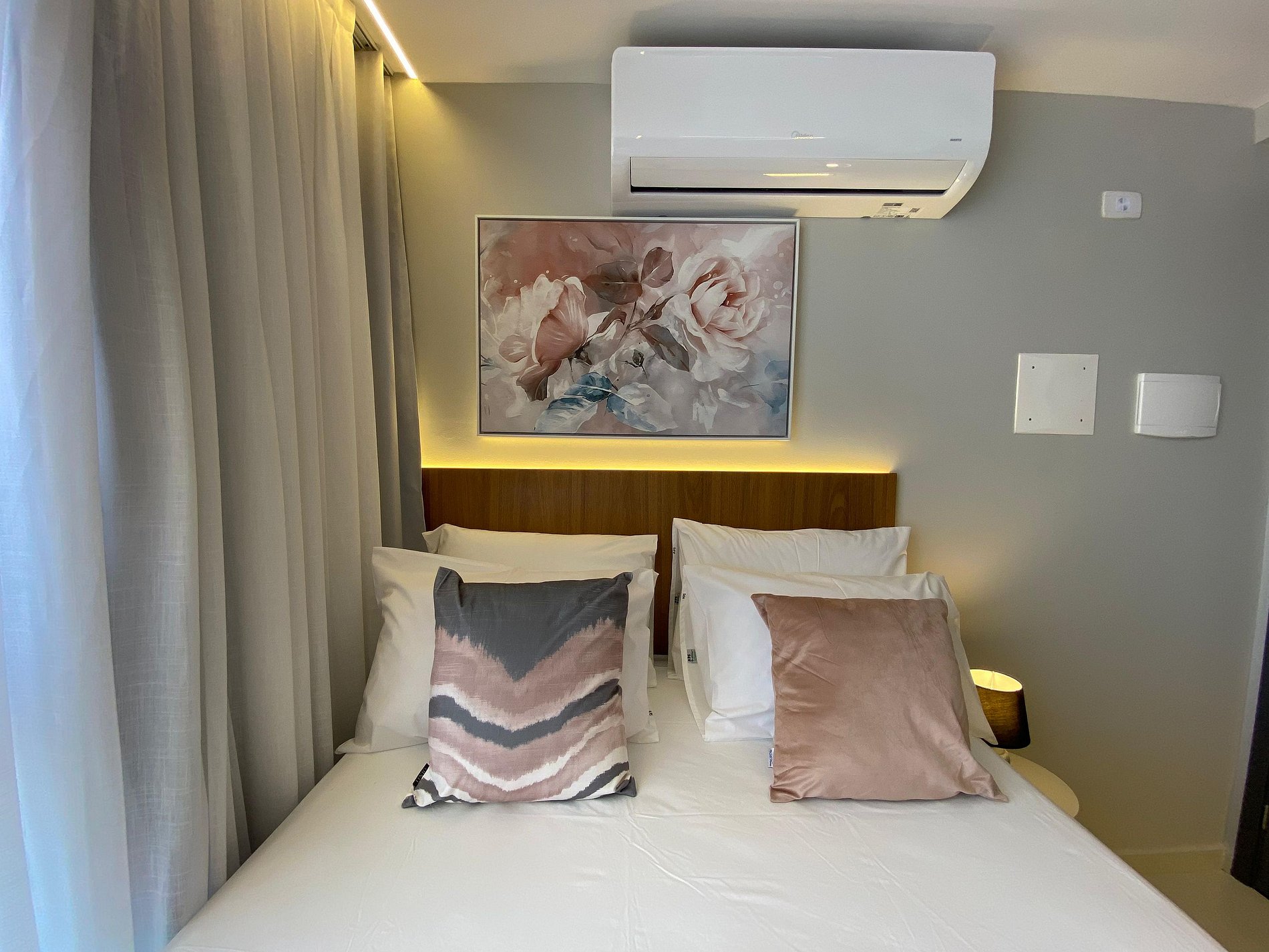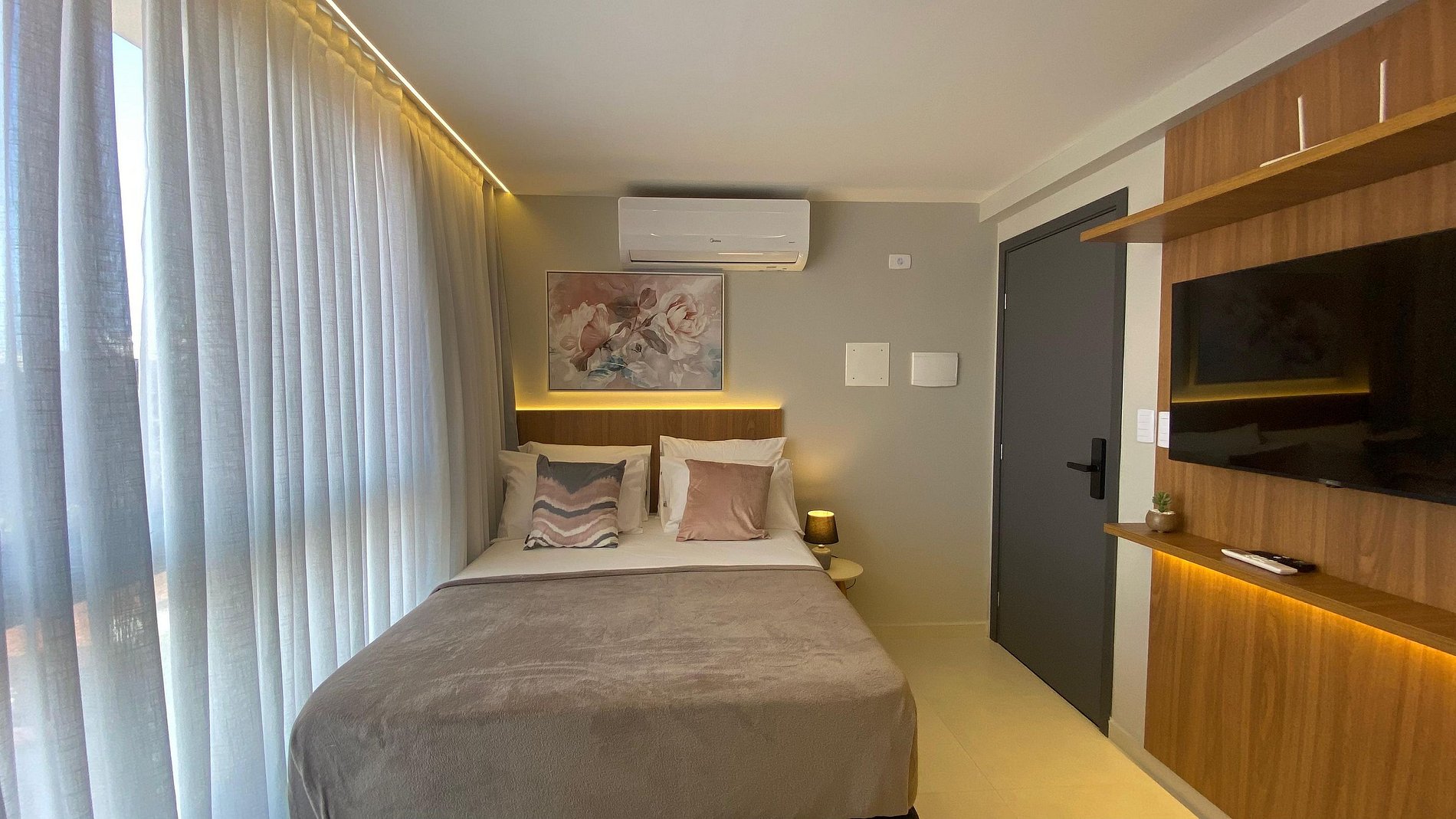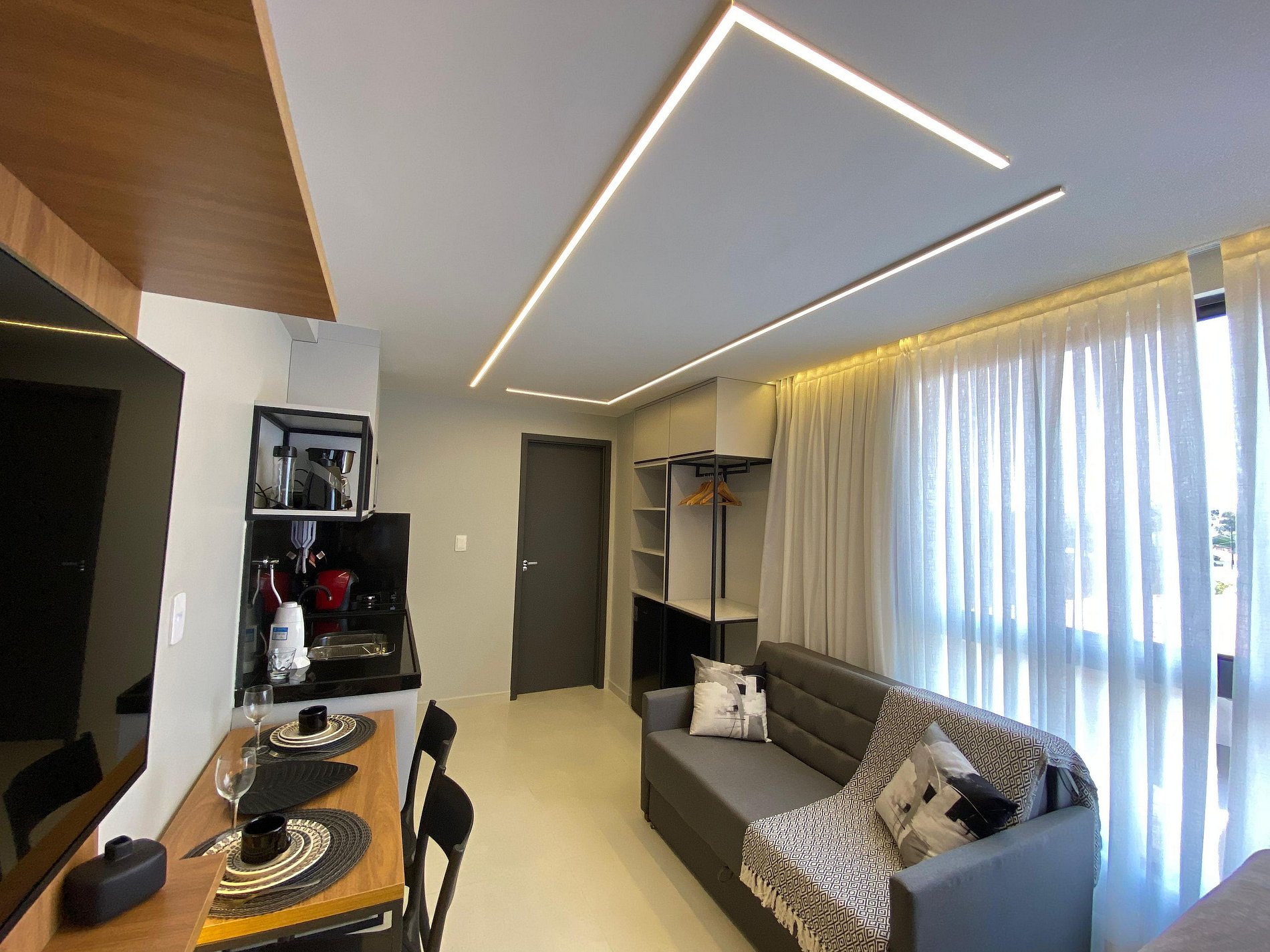 O studio conta com Wi-Fi, roupas de cama e banho fornecidas pela gestão profissional da Hosppedar, além de uma cozinha equipada com frigobar, fogão, microondas, liquidificador, cafeteira, sanduicheira, purificador de água e todos os utensílios necessários para você se sentir em casa.