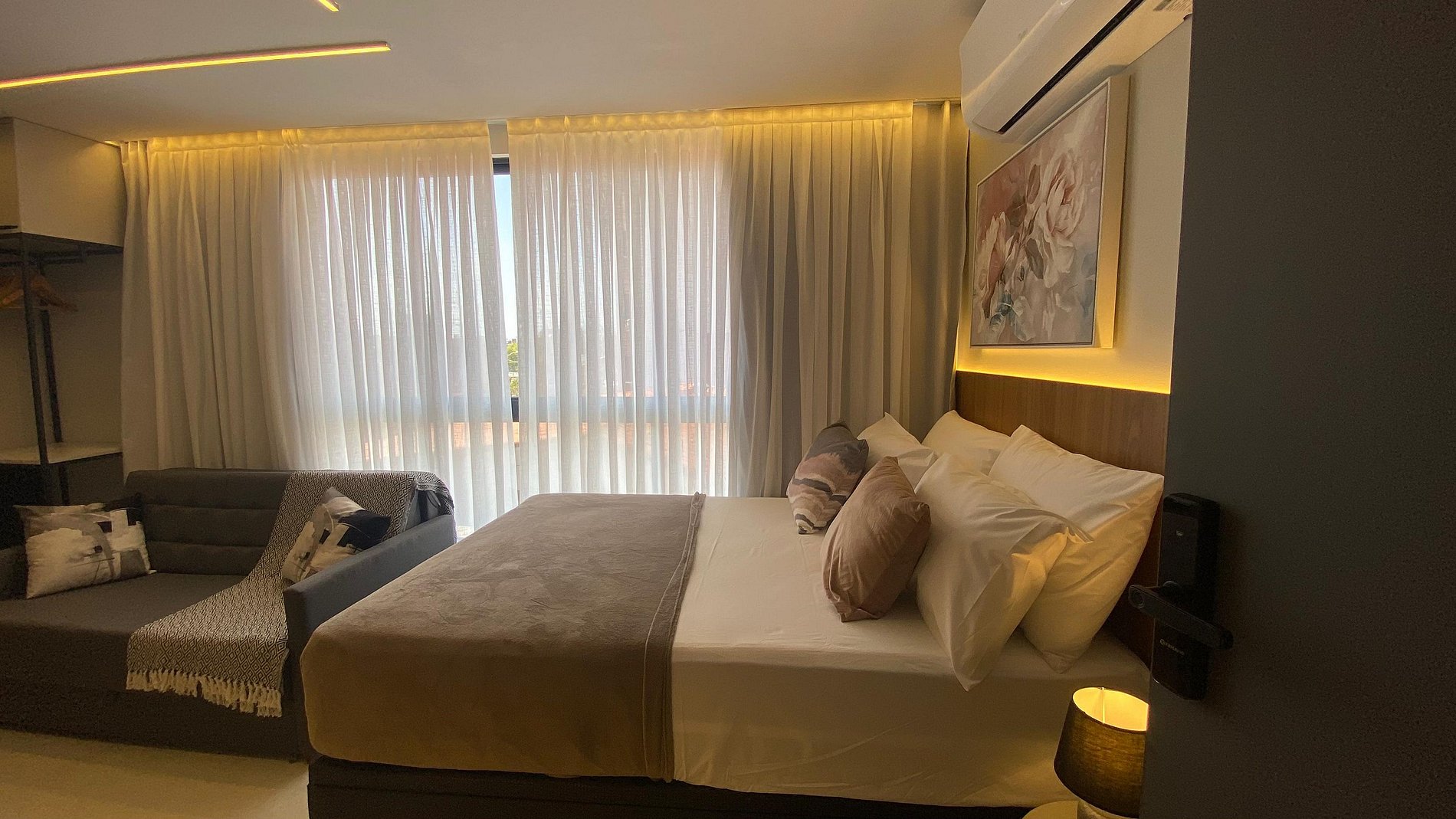 Conforto e funcionalidade em um studio a poucos passos do mar! Localizado no prédio Storey Luxor, na Av. Fernando Luiz Henrique dos Santos, este espaço moderno e cuidadosamente decorado acomoda até 4 pessoas com uma cama de casal e sofá-cama. Equipado com Wi-Fi, cozinha (frigobar, fogão, microondas, cafeteira e mais) e roupas de cama e banho da gestão Hosppedar. Na cobertura, vista encantadora com piscina.