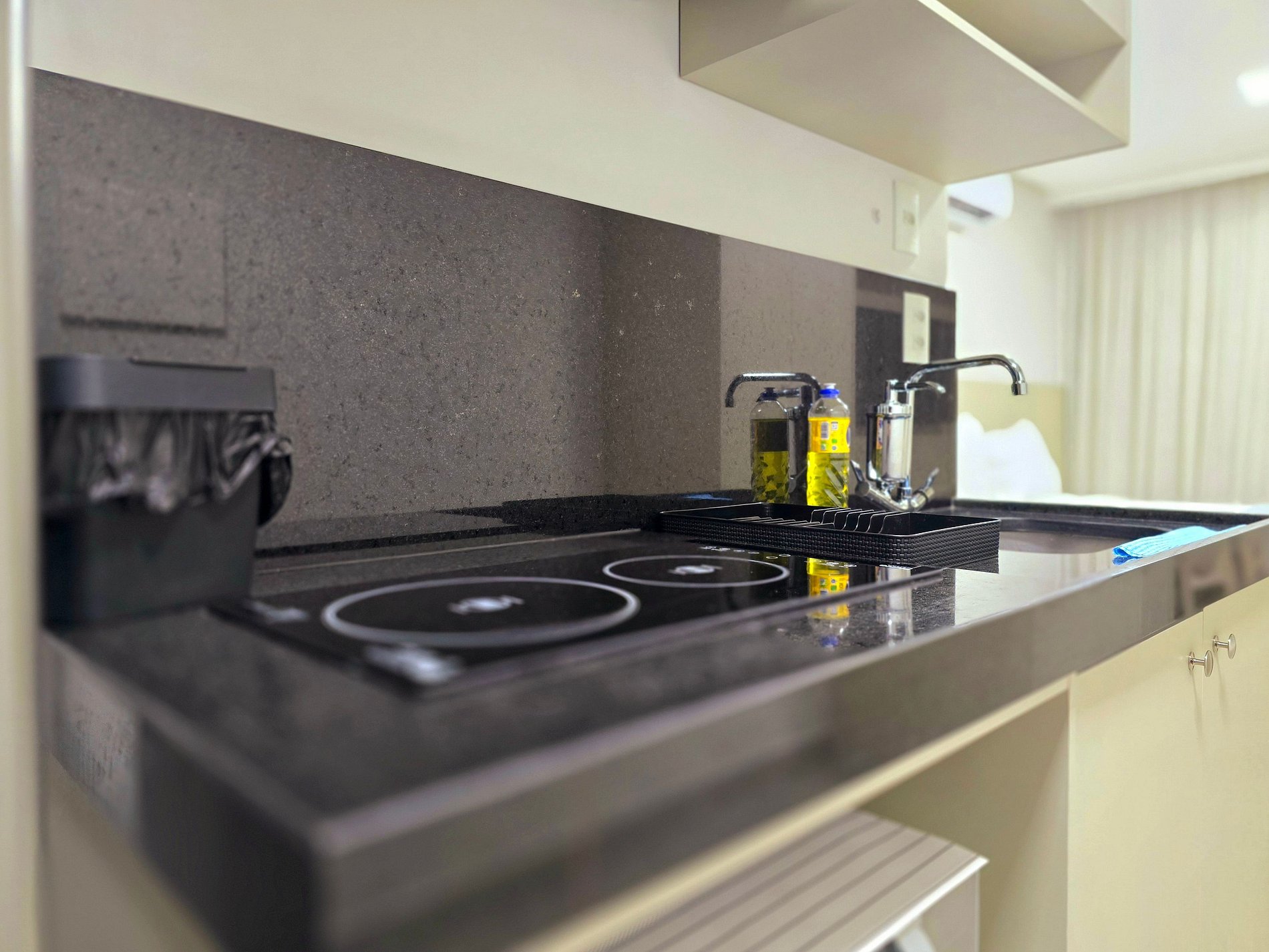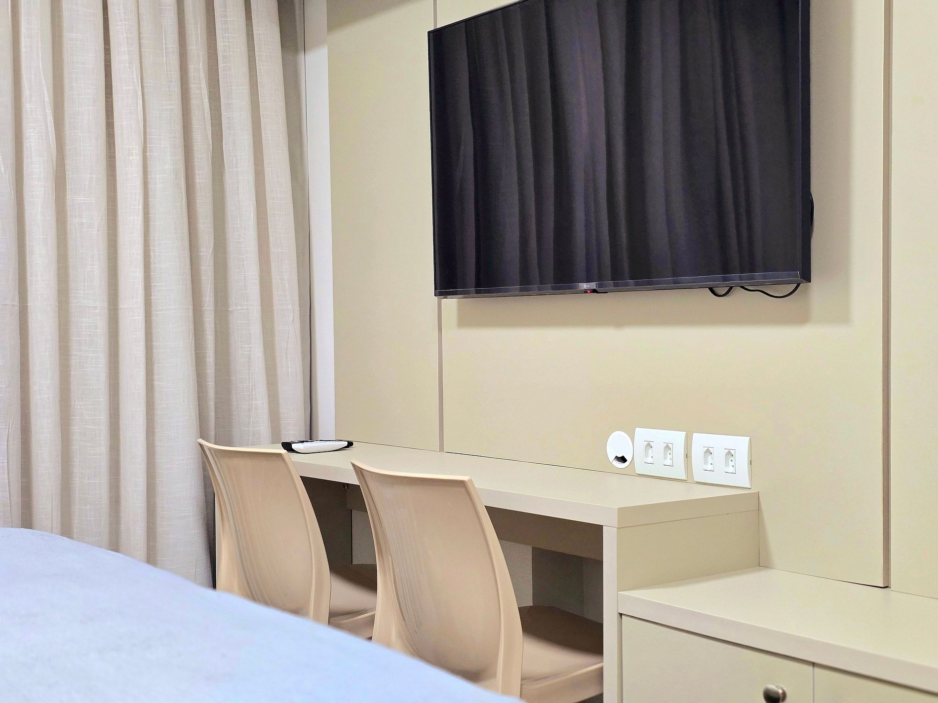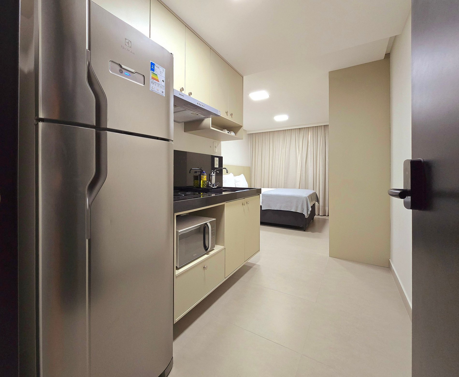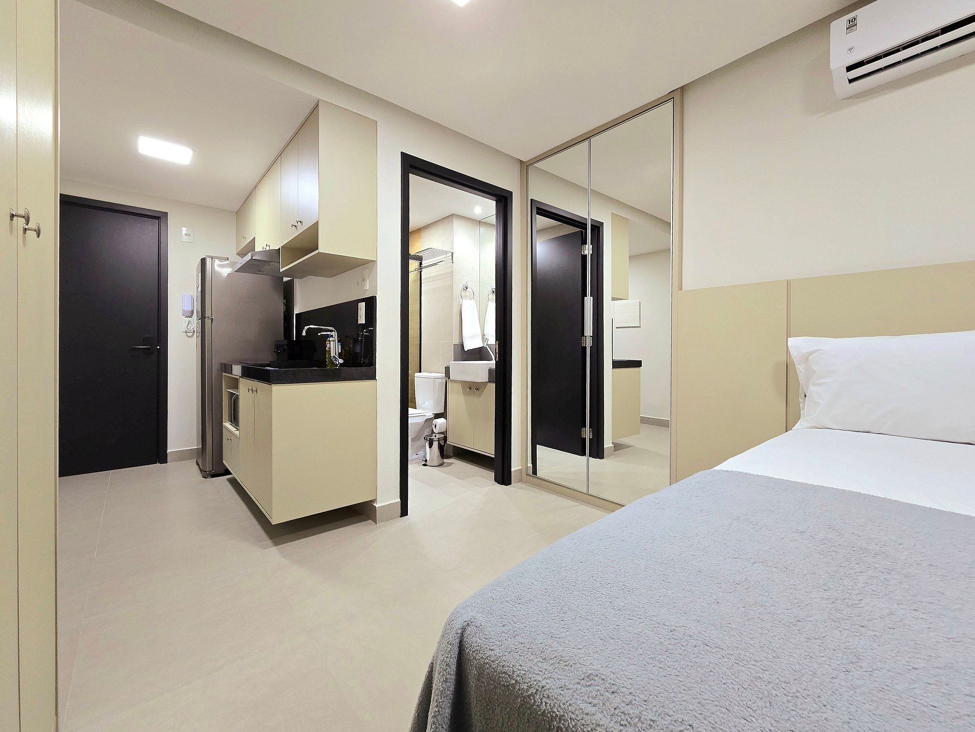 - Cortinas blackout e armários espaçosos, ideais para estadias mais longas.