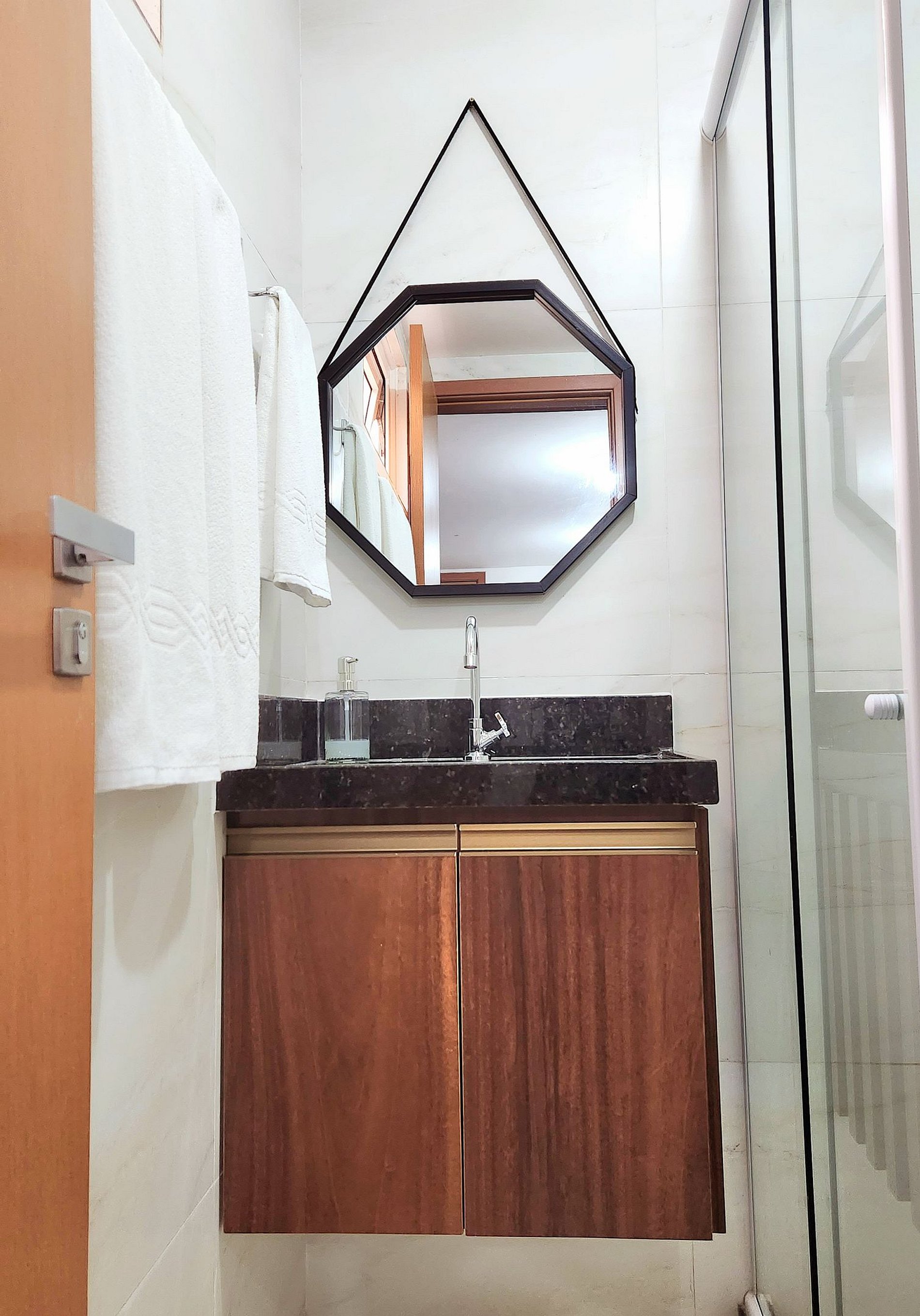 O banheiro privativo proporciona privacidade e conveniência, com tudo o que você precisa para se refrescar depois de um dia de praia. E para tornar a sua estadia ainda mais conveniente, fornecemos roupas de cama e banho sem nenhum custo adicional.