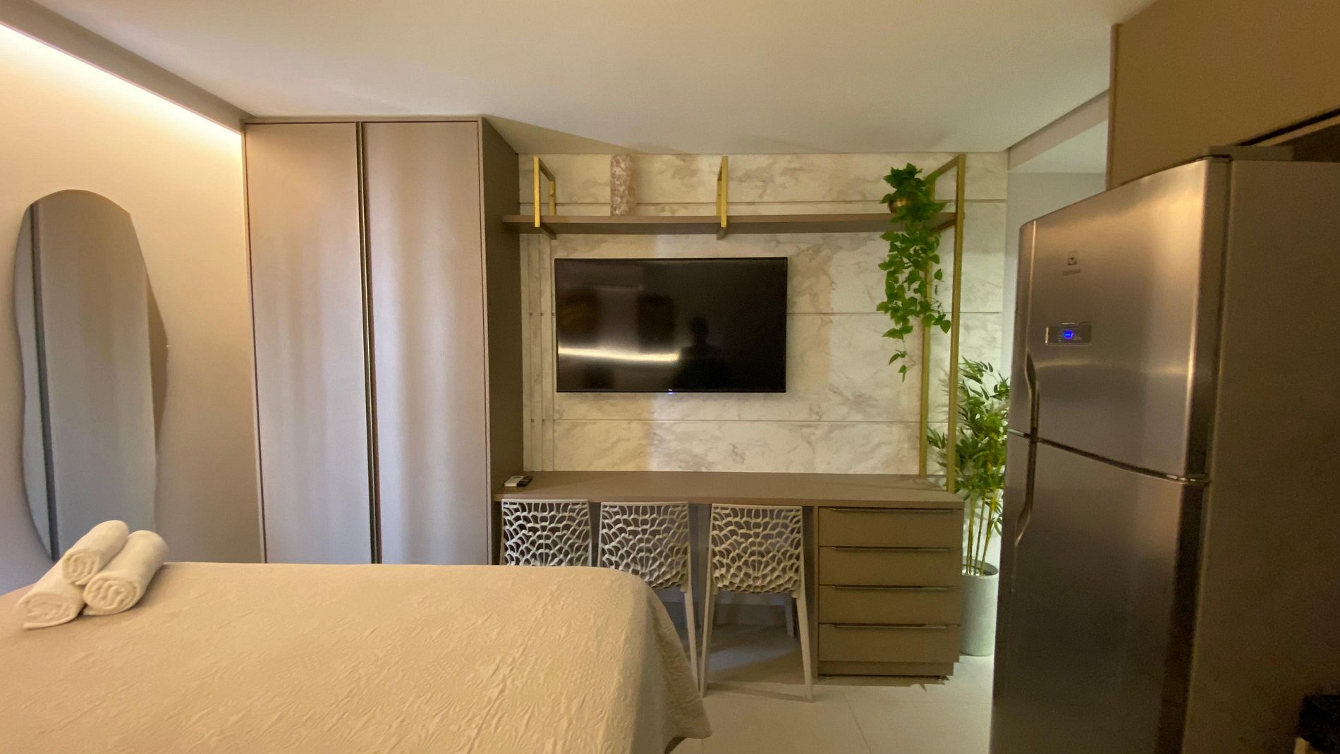 - Guarda-roupas espaçosos, ideal para estadias mais longas.