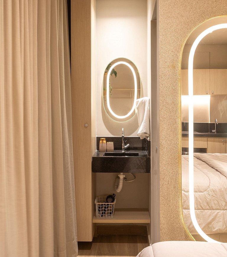 O flat conta ainda com secador de cabelo, ferro de passar e todo o suporte da equipe da Hosppedar, garantindo uma experiência tranquila do início ao fim.
