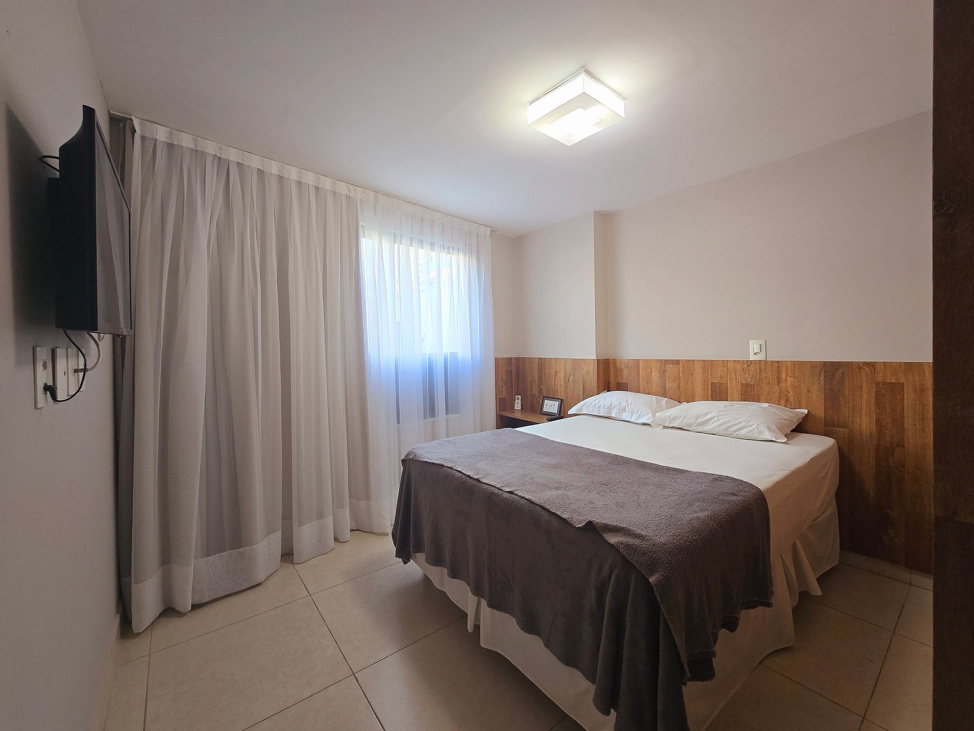 Suíte: Com cama de casal, ar-condicionado, guarda-roupas, TV smart e cortina blackout, garantindo noites tranquilas. (2 pessoas)