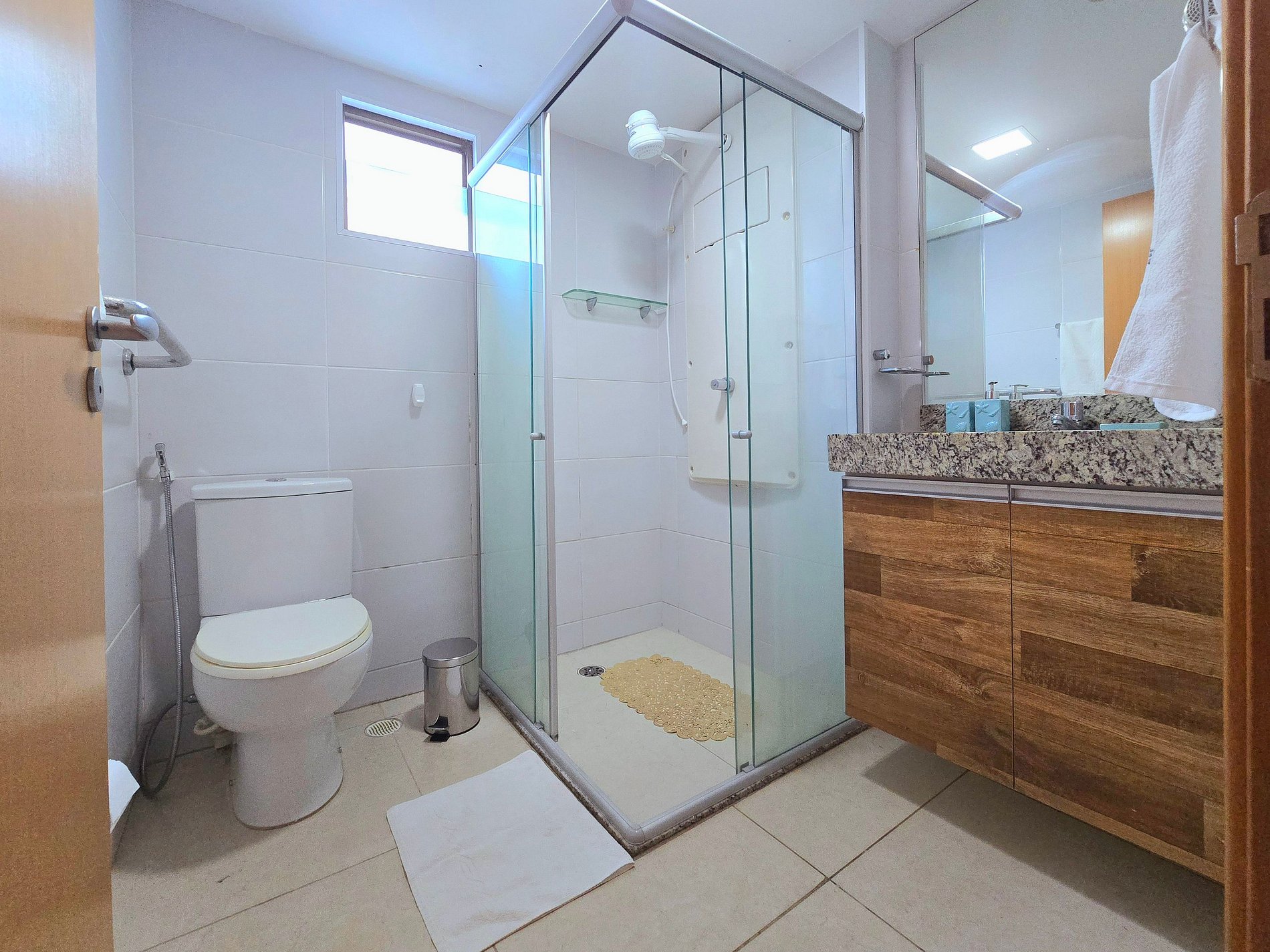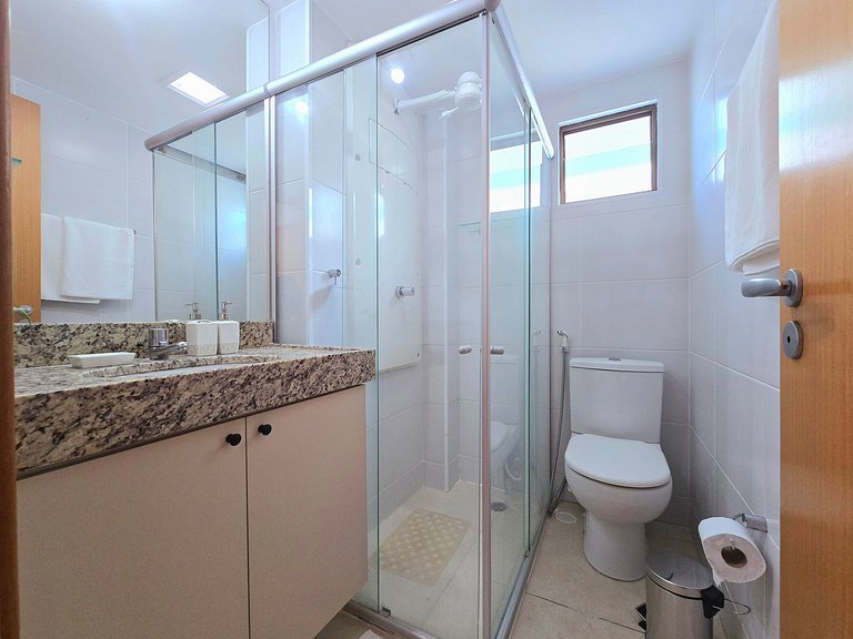 Banheiro Social: Completo, equipado com chuveiro e itens essenciais.
