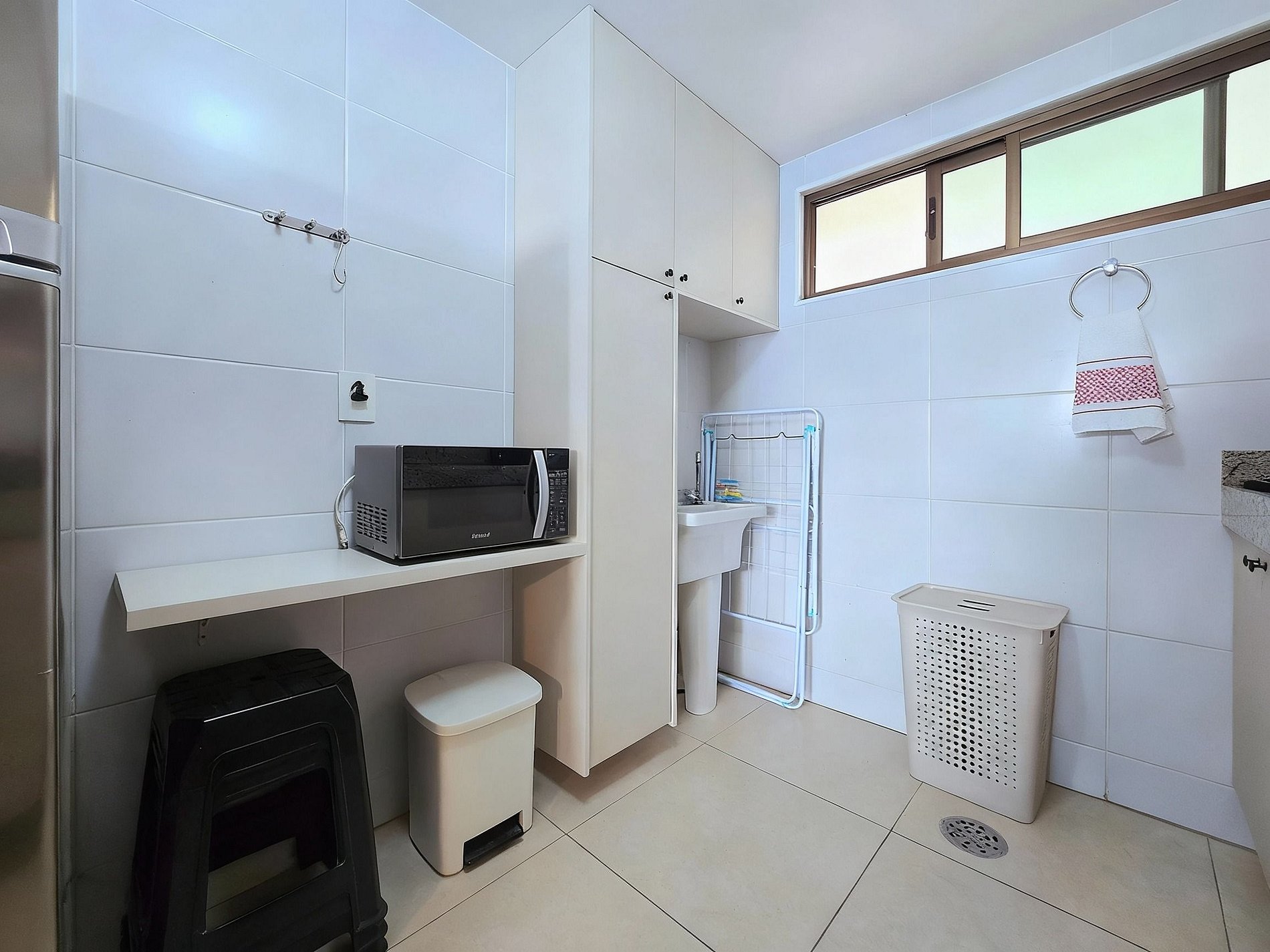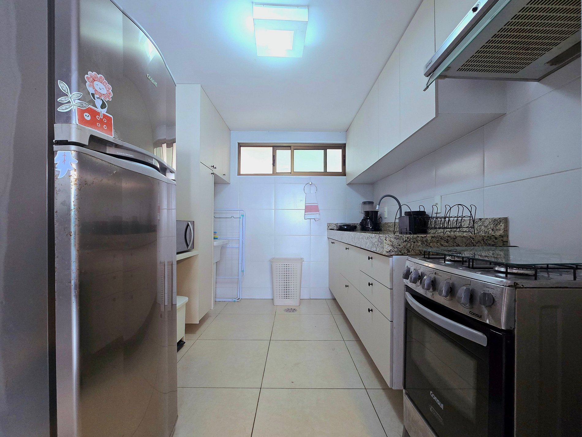 Cozinha Completa: Fogão, forno, coifa, geladeira, micro-ondas, cafeteira, sanduicheira, liquidificador, além de copos, pratos e talheres. O imóvel também conta com secador de cabelo, ferro de passar e varal.