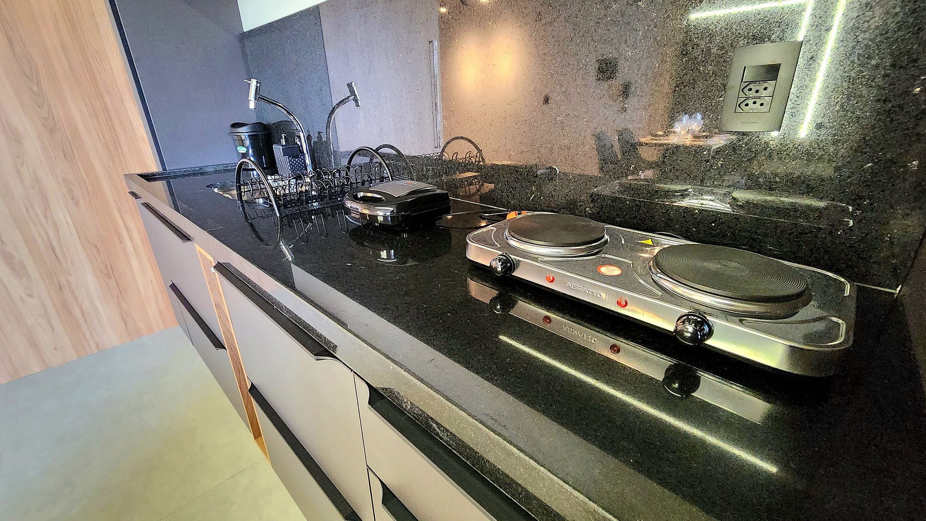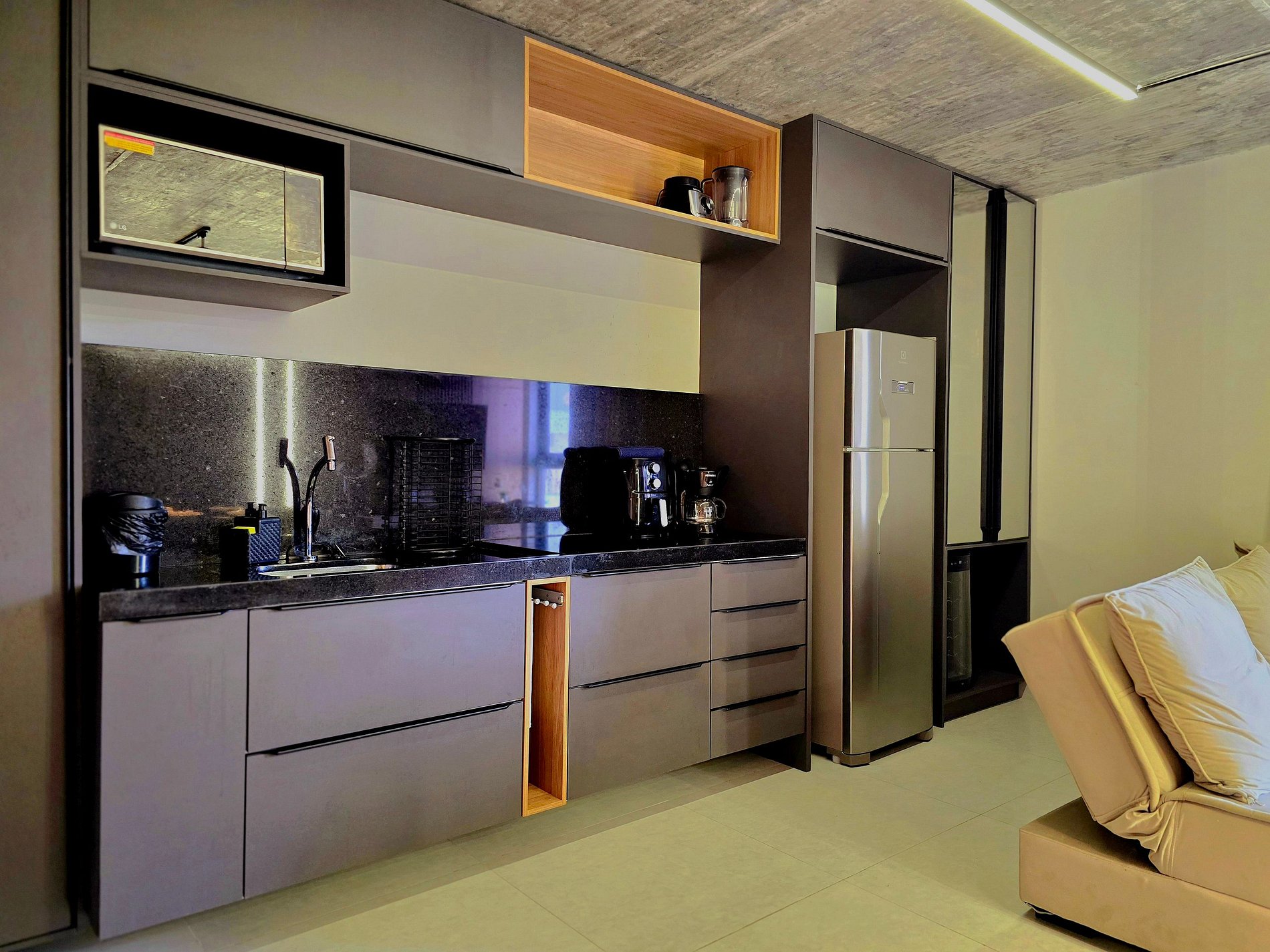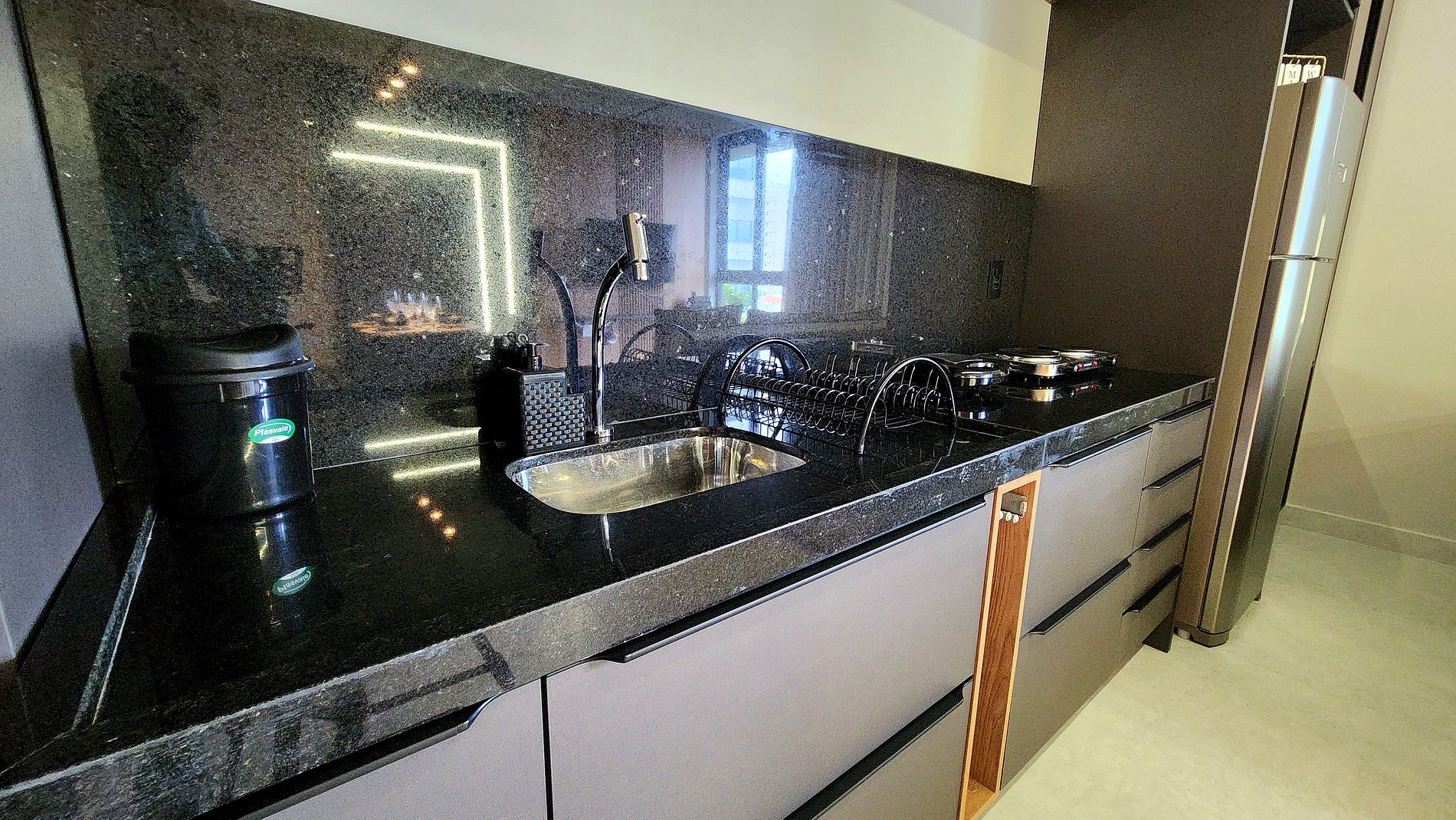 Comodidades Premium: Para garantir que sua estadia seja ainda mais prática e agradável, disponibilizamos uma cozinha completa com fogão, geladeira, micro-ondas, liquidificador e air fryer. Além disso, você poderá apreciar uma boa taça de vinho com nossa adega. Tudo foi pensado para tornar sua estadia o mais confortável possível!