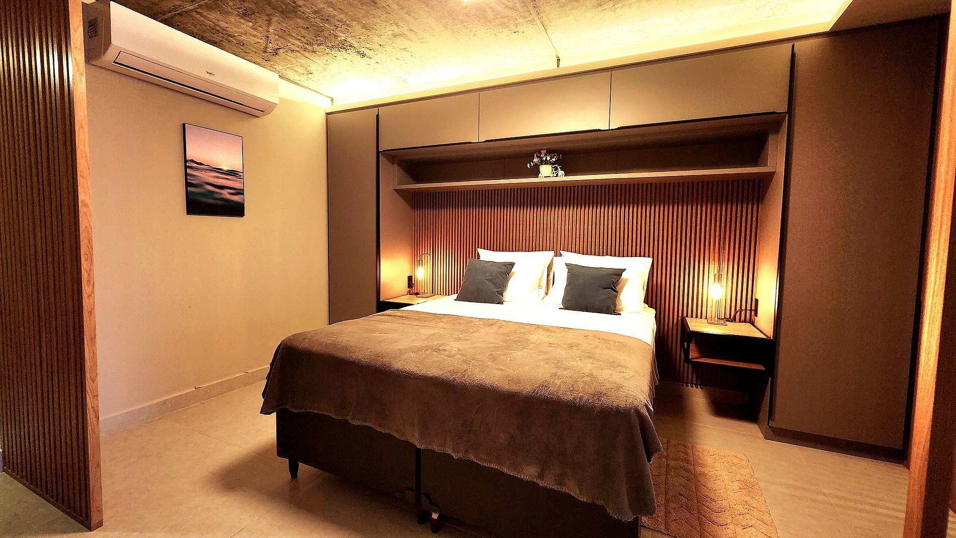 Conforto e Estilo: O espaço conta com uma cama queen espaçosa e um sofá-cama confortável, acomodando até 4 pessoas com tranquilidade. Nossa decoração é pensada para criar um ambiente acolhedor, moderno e funcional, perfeito para relaxar depois de um dia de passeio.