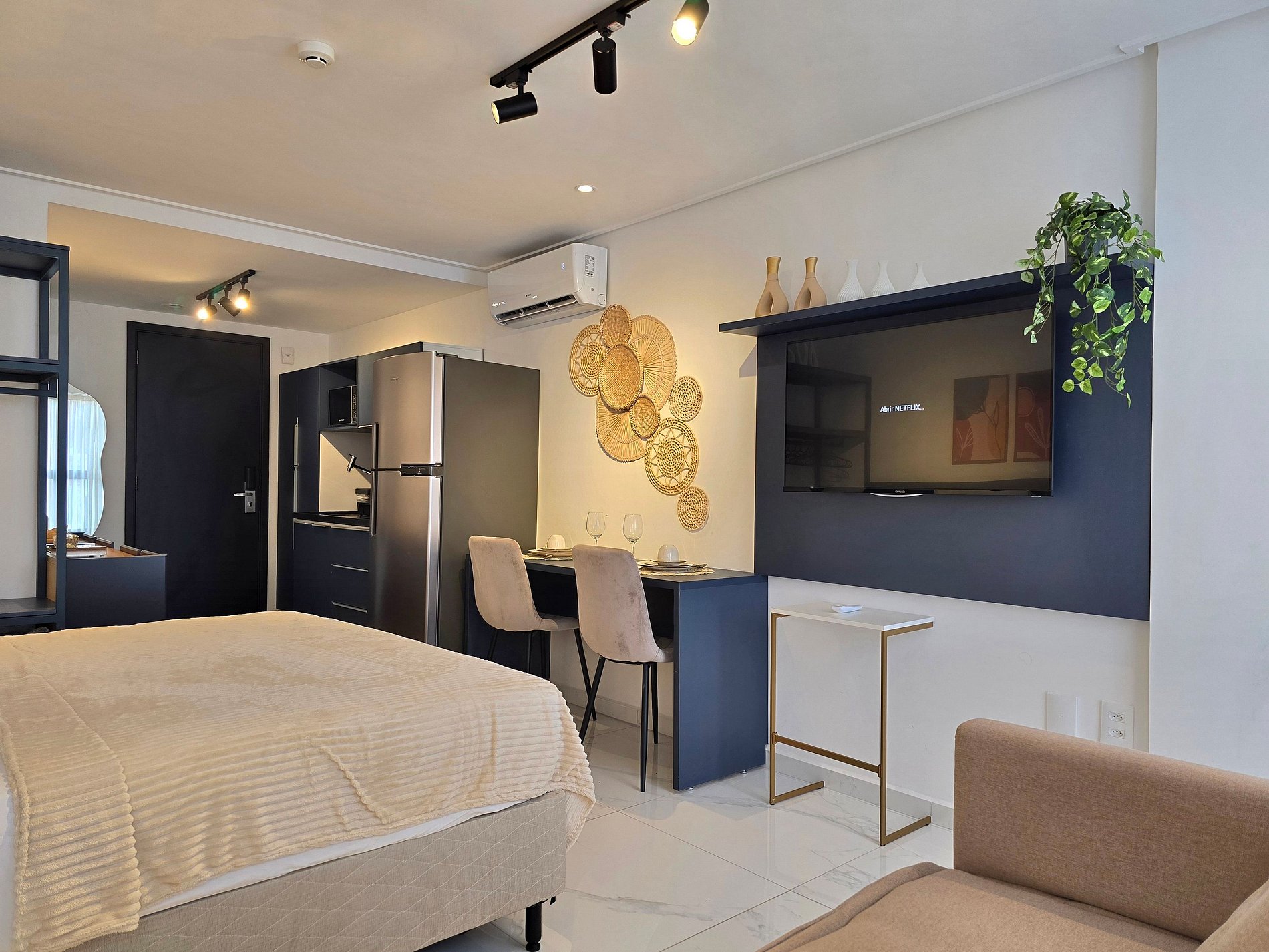 Este studio no Move é perfeito para quem busca praticidade, conforto e localização estratégica em João Pessoa. Com gestão profissional da @hosppedar, o apartamento acomoda até 5 pessoas e oferece tudo para você se sentir em casa: cozinha equipada, roupas de cama e banho, além de uma vista de tirar o fôlego no rooftop com piscina e academia. A poucos passos da praia e rodeado de mercados, padarias e restaurantes.