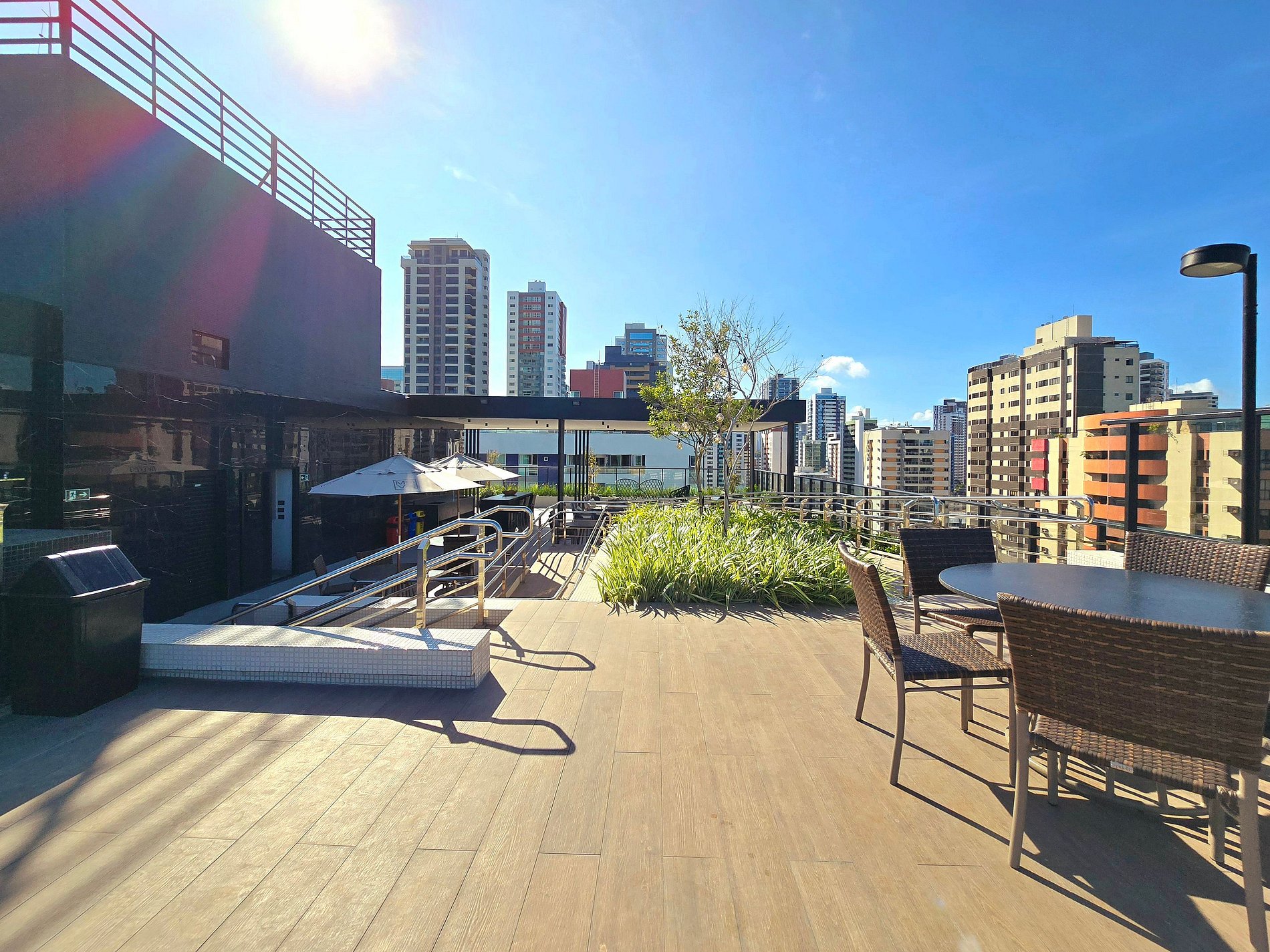 O edifício conta com academia e uma piscina no rooftop com vista para o mar. A rotina ganha novo ritmo com a praia a apenas 450 metros e toda a cidade vibrando ao redor — padarias, mercados, restaurantes e tudo o que importa a poucos passos de distância. Estacionamento rotativo disponível.