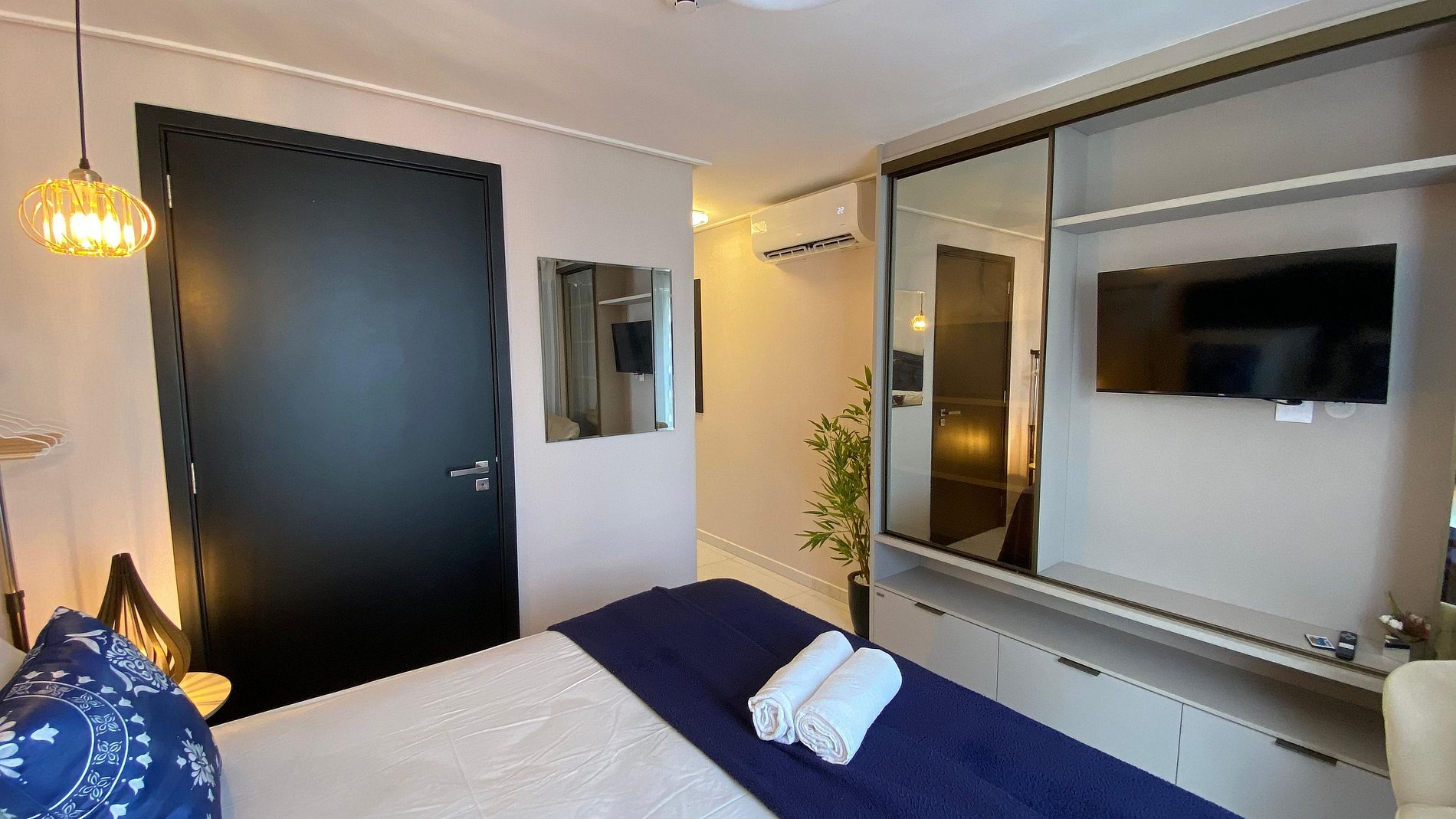 Conforto, funcionalidade e localização estratégica definem este studio no Move. Ideal para até 3 pessoas, o espaço é gerido pela @hosppedar com atenção a cada detalhe. Conta com cozinha completa, enxoval de qualidade e estrutura pensada para garantir uma estadia tranquila. No rooftop, a piscina e a academia elevam a experiência. Próximo à praia e cercado por padarias, mercados e ótimas opções gastronômicas.