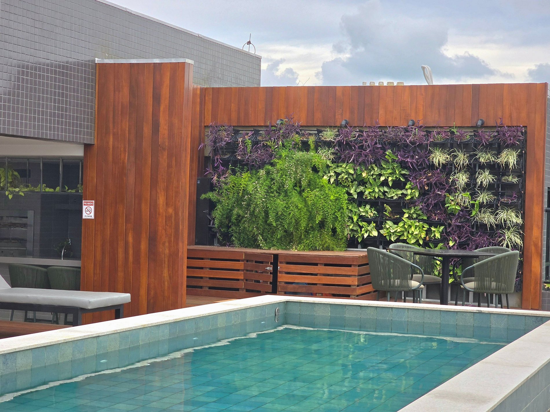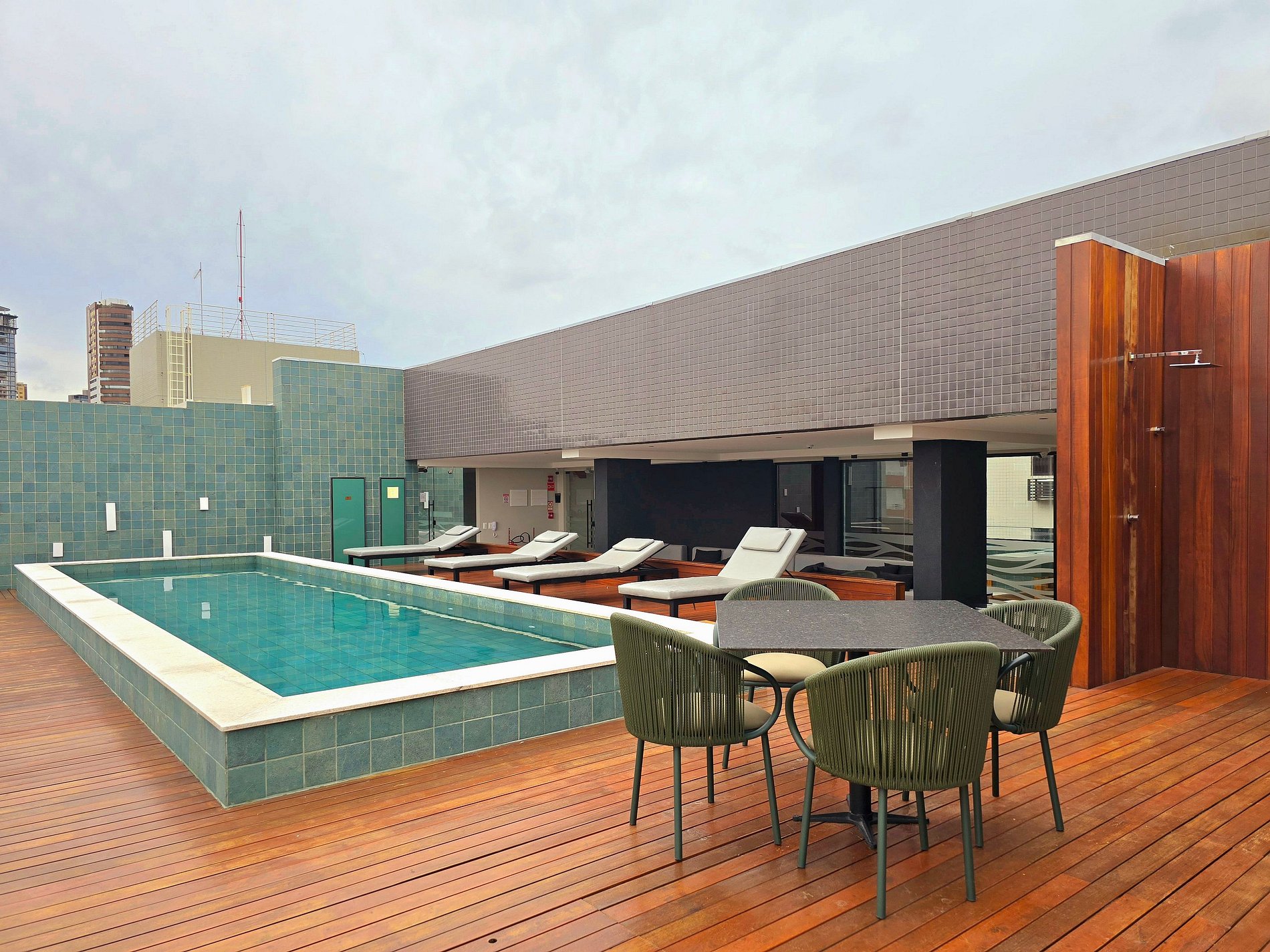 A estrutura do prédio complementa a experiência: academia, lavanderia, brinquedoteca e uma piscina no alto com uma das vistas mais encantadoras da orla de João Pessoa.