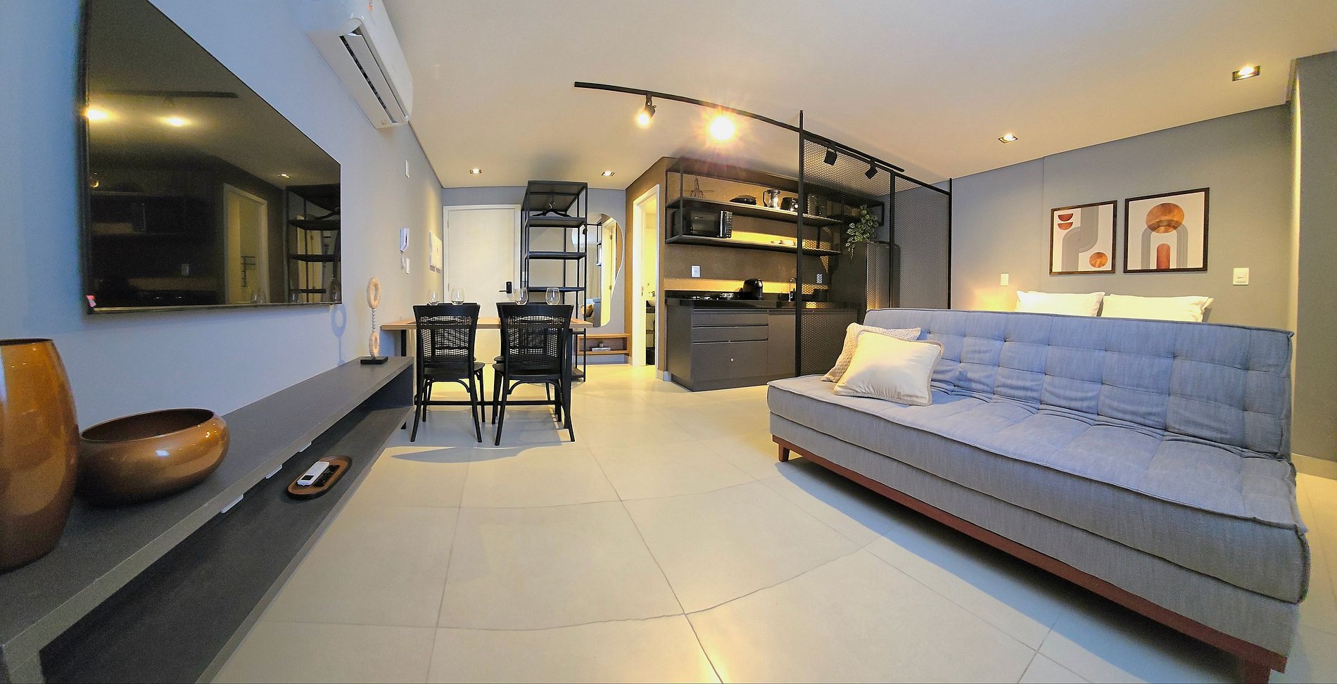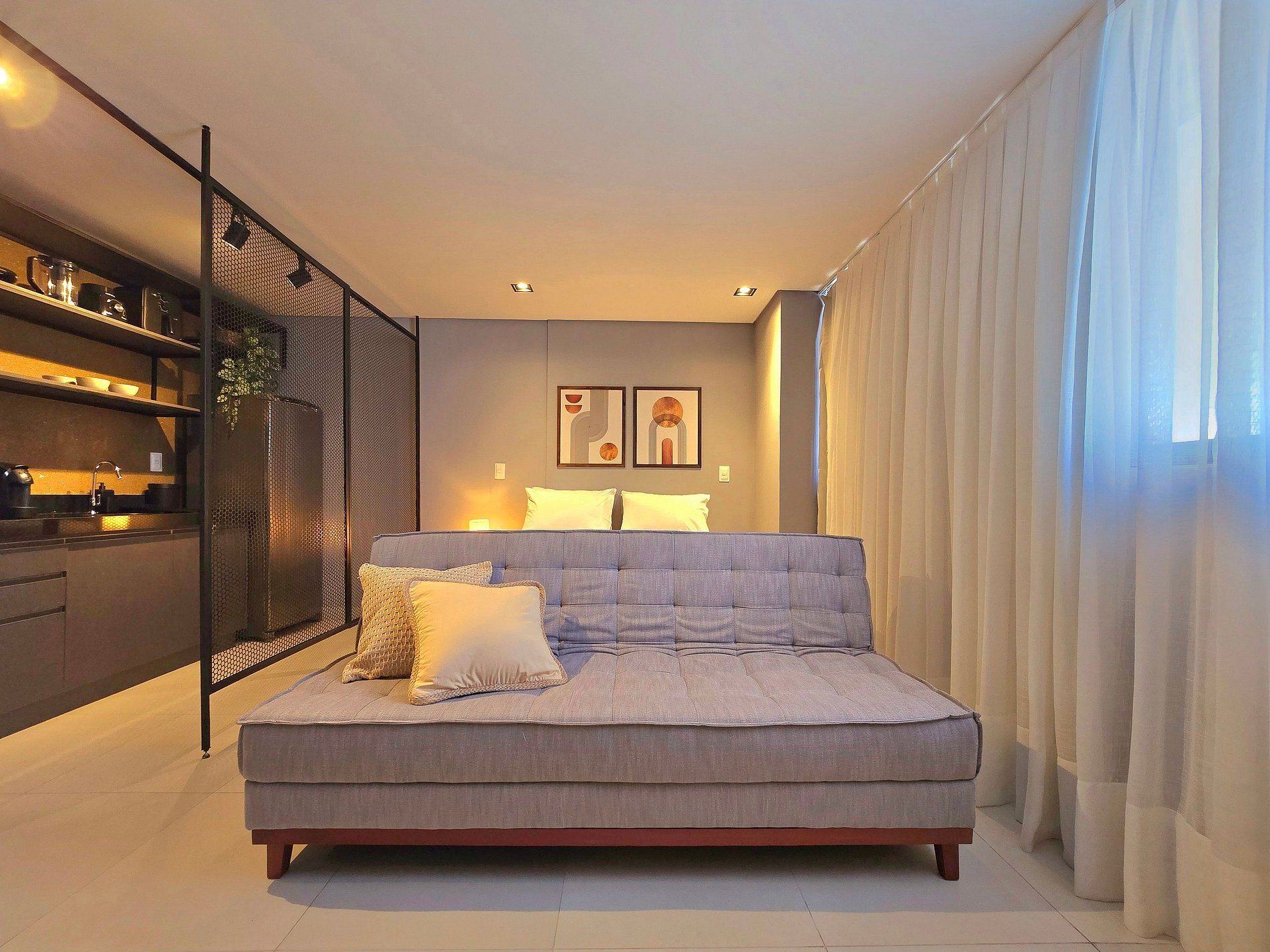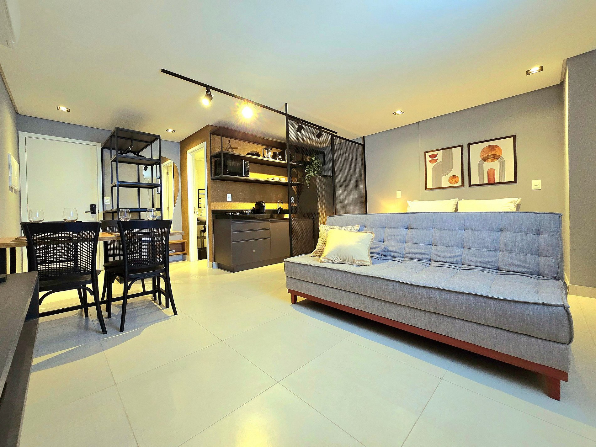 Há quem diga que a verdadeira liberdade mora nos detalhes — e é exatamente o que se sente ao entrar neste studio no 14º andar do Voll29. Um espaço pensado para receber com leveza quem chega em busca de dias mais simples, mas cheios de conforto e bom gosto.