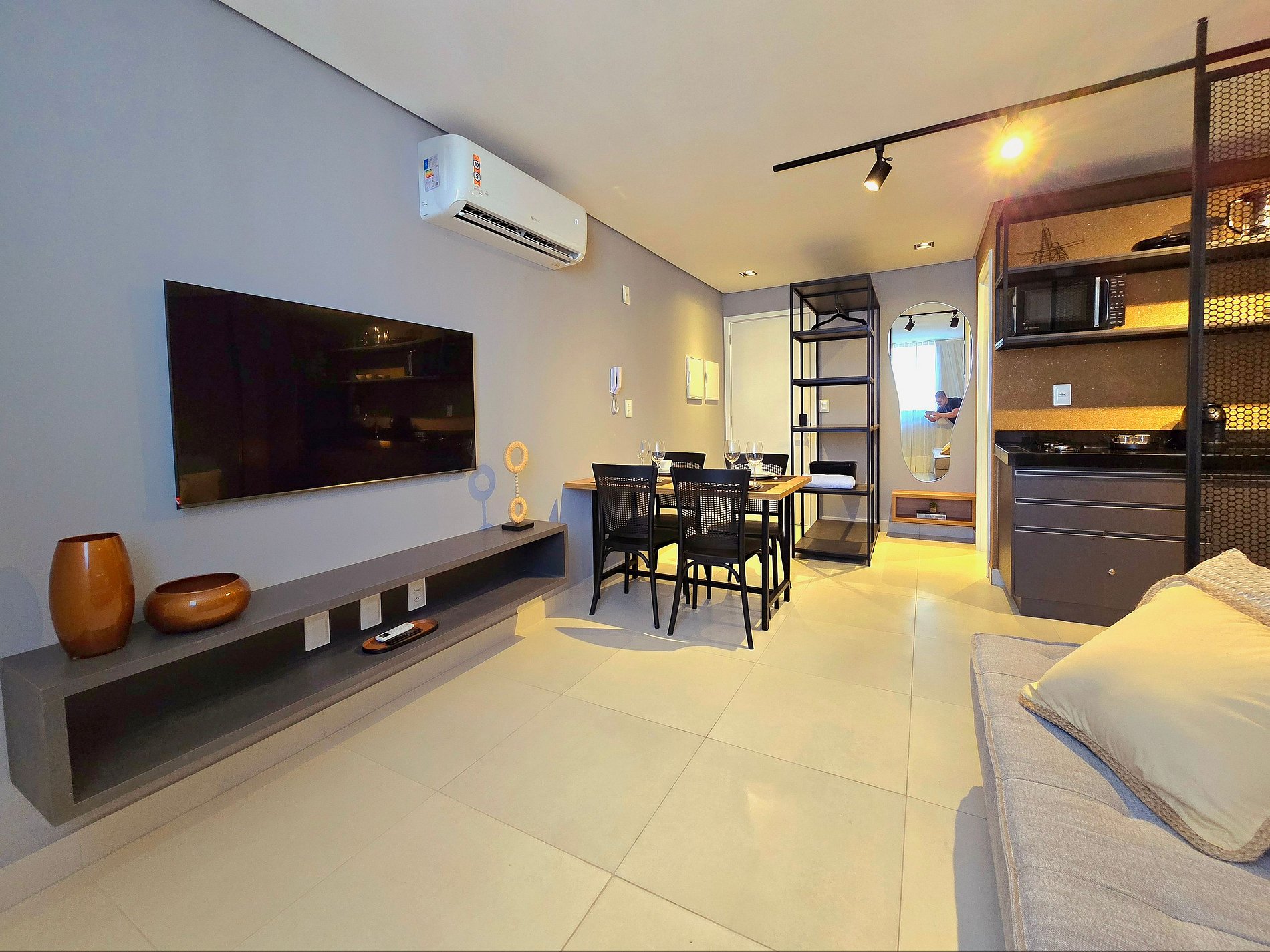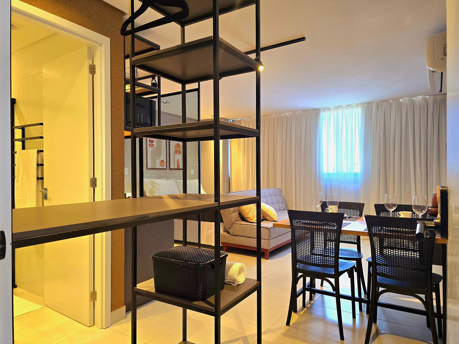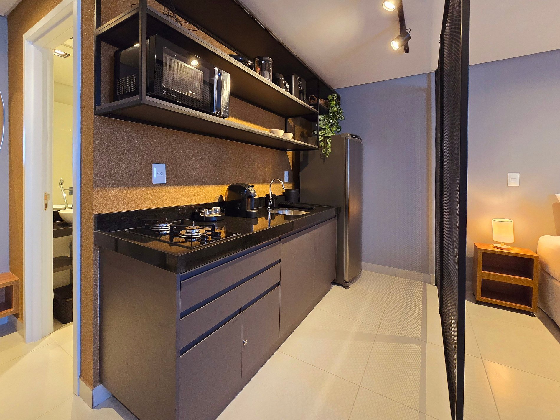 Há quem diga que a verdadeira liberdade mora nos detalhes — e é exatamente o que se sente ao entrar neste studio no 14º andar do Voll29. Um espaço pensado para receber com leveza quem chega em busca de dias mais simples, mas cheios de conforto e bom gosto.