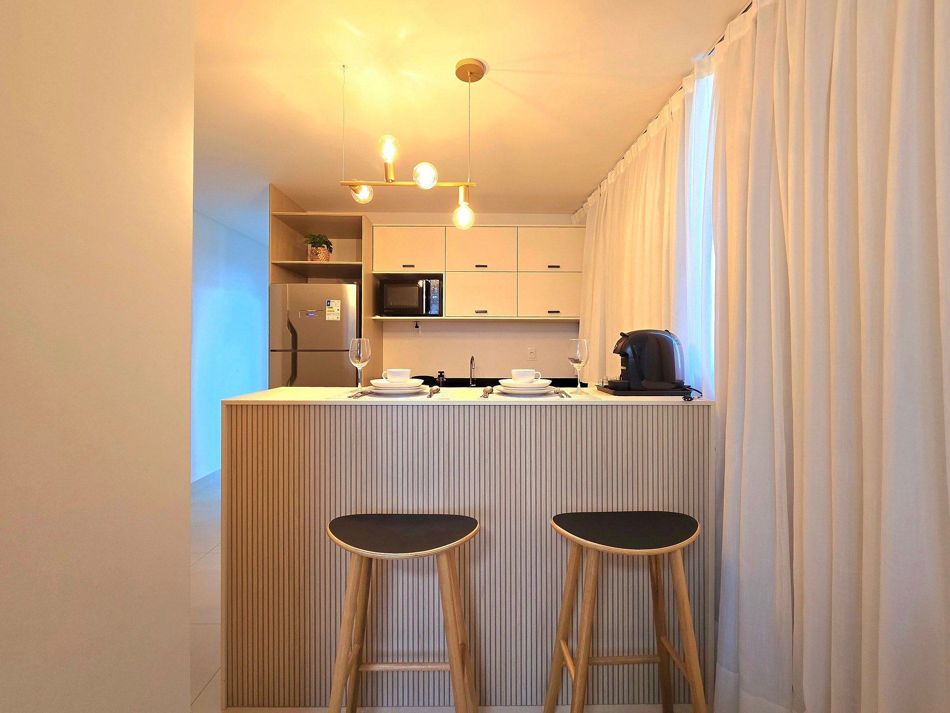 Há também ferro de passar, secador de cabelo, roupas de cama e banho limpas e macias, tudo com a curadoria profissional da @hosspedar, que cuida para que você se sinta em casa do início ao fim.