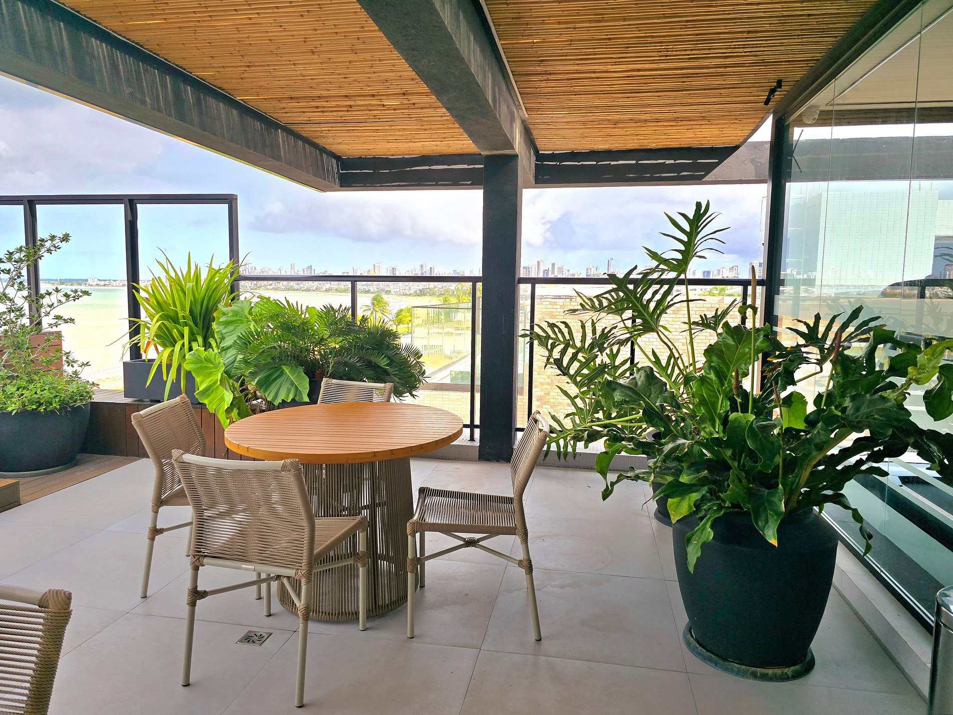 No prédio, o rooftop é um espetáculo por si só. A piscina reflete o céu de João Pessoa enquanto o mar segue ali, à vista, como parte do cenário. A academia no mesmo andar garante energia para o dia.