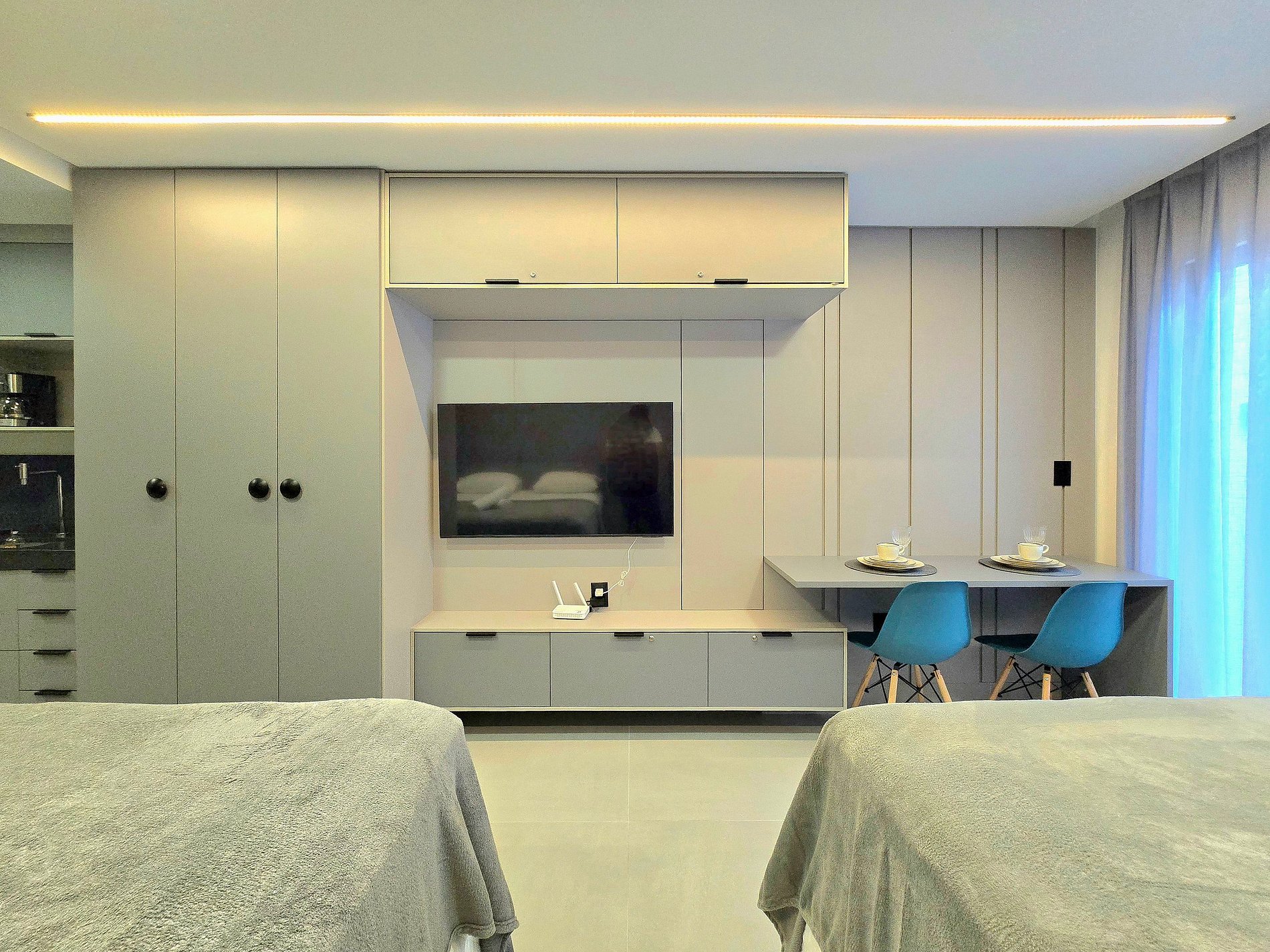 Às vezes, tudo o que a gente precisa é de um lugar onde o tempo corre devagar. Onde é possível ouvir o barulho das ondas logo ali, atravessando o silêncio. Nesse studio 001, térreo, no Get Sense, cada detalhe acolhe — da jacuzzi ao ar livre ao café feito devagarinho na cozinha equipada.