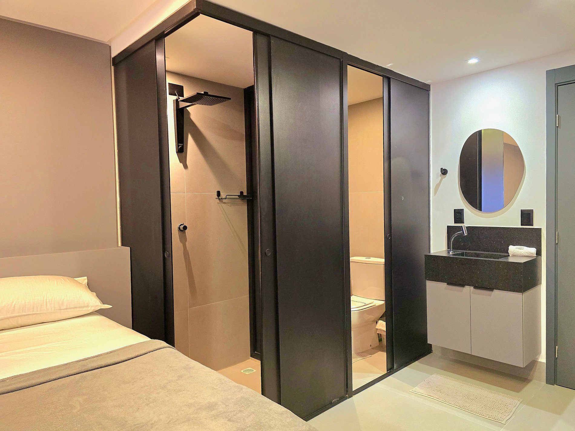 Despertar com o som do mar, viver momentos de tranquilidade e ainda contar com uma jacuzzi só sua. Esse studio no Get Sense é um convite à leveza. Prédio em frente ao mar do Bessa — o famoso Caribessa — une conforto, sofisticação e praticidade. A área externa privativa traz charme e exclusividade. O prédio novíssimo, com rooftop e piscina com vista para o mar, completa a experiência. Ideal para casais ou pequenos grupos que valorizam cada detalhe da estadia.