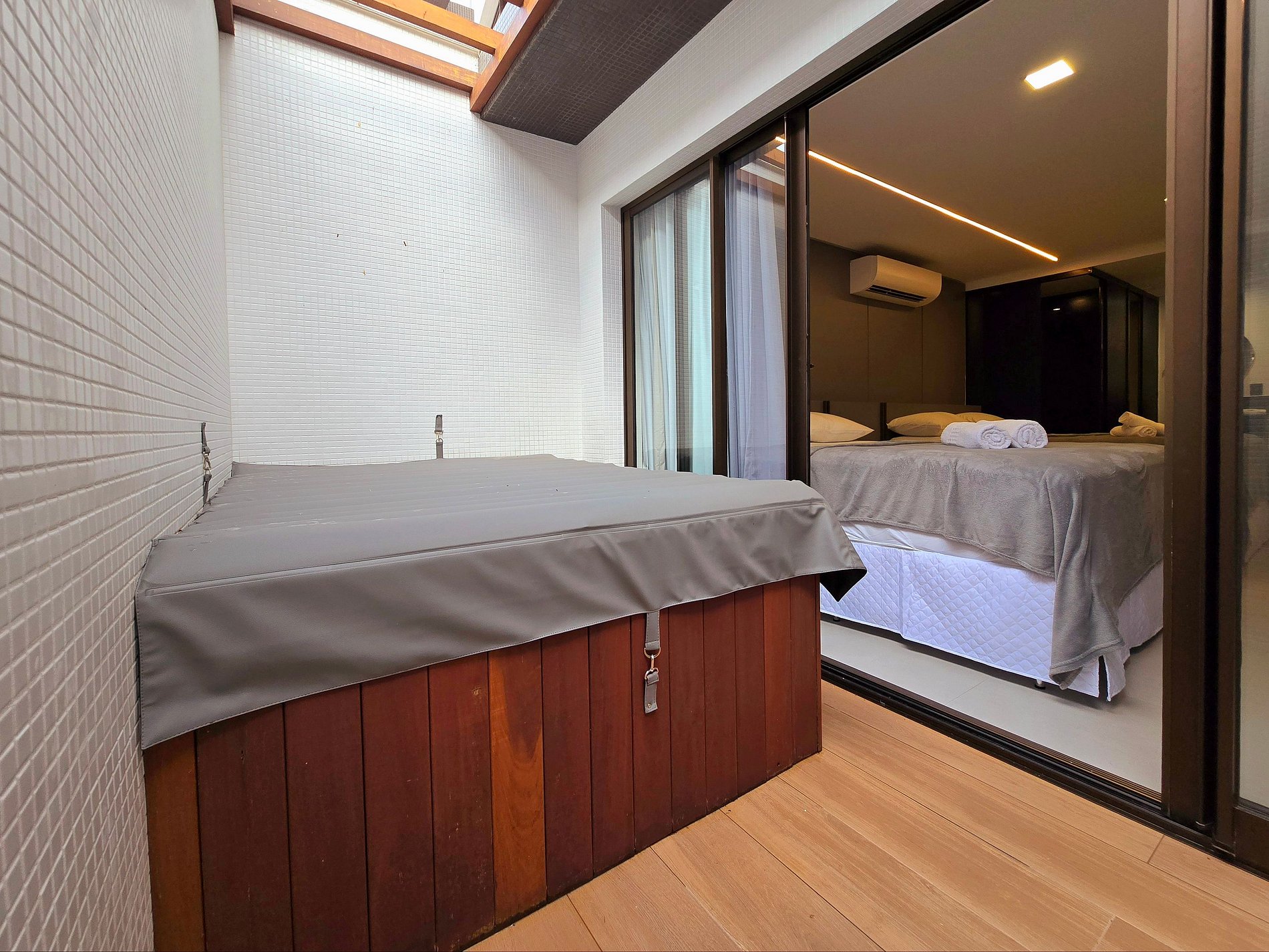 E o diferencial que encanta: Uma área externa privativa, com jacuzzi exclusiva para você relaxar com total privacidade