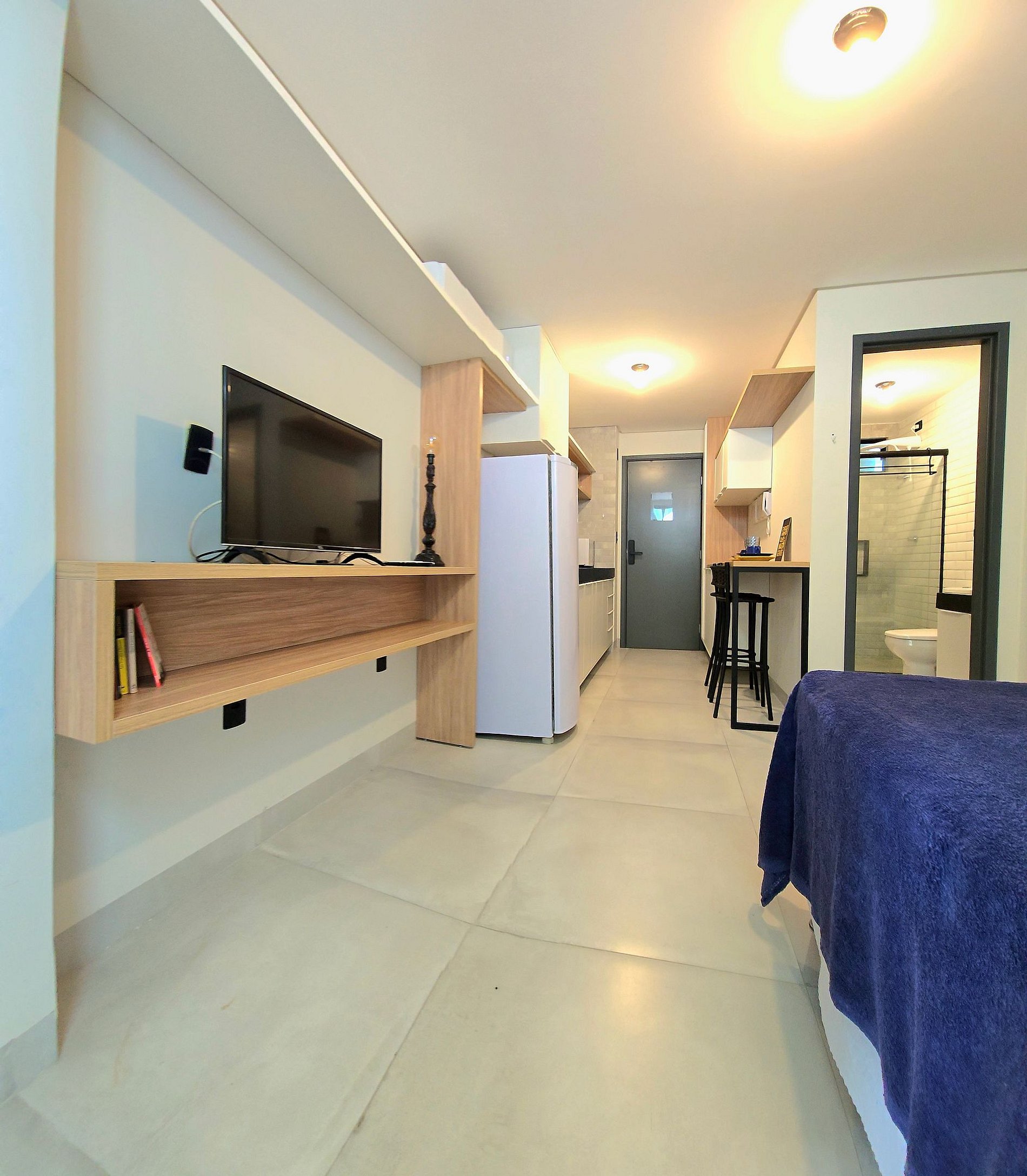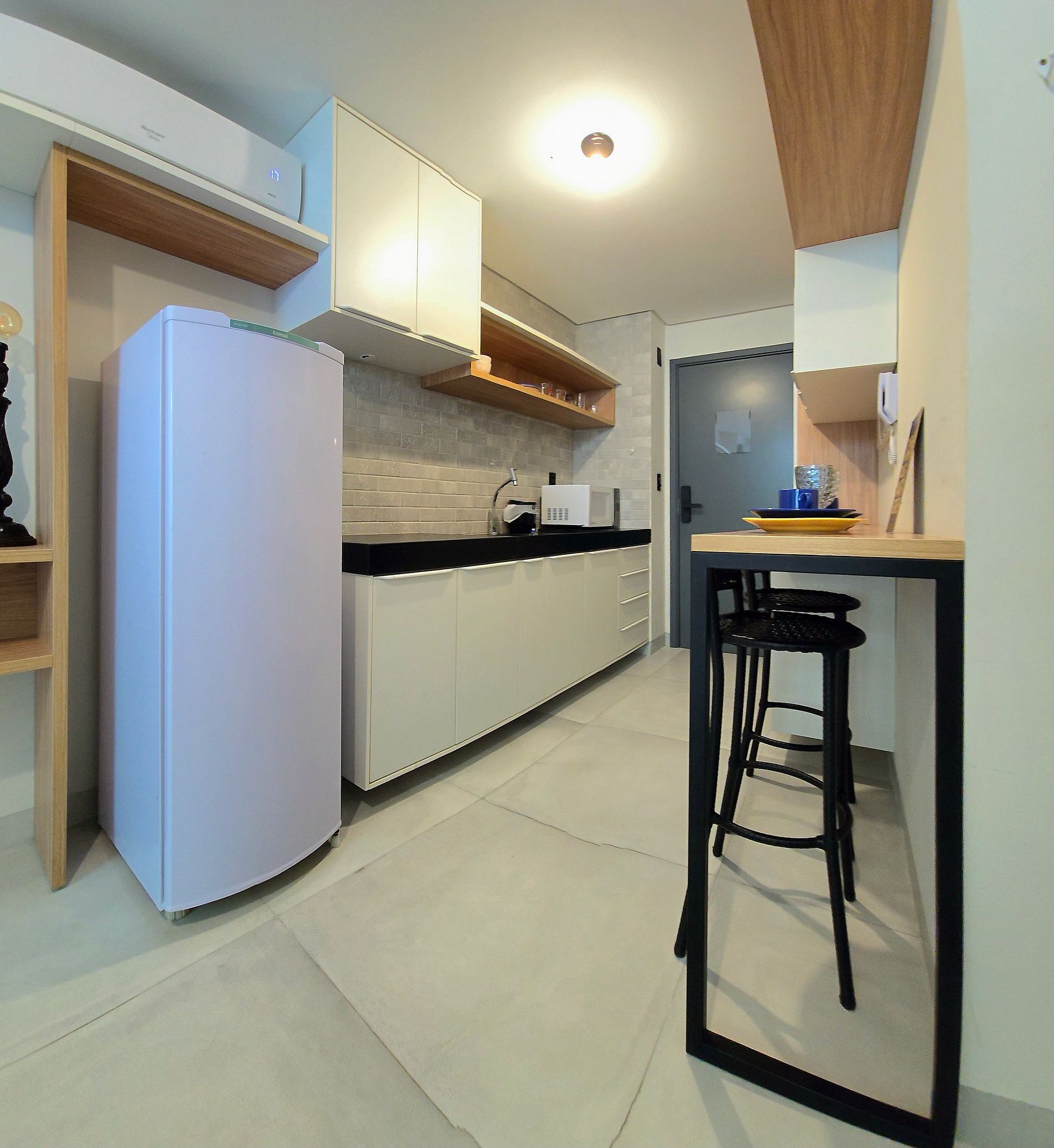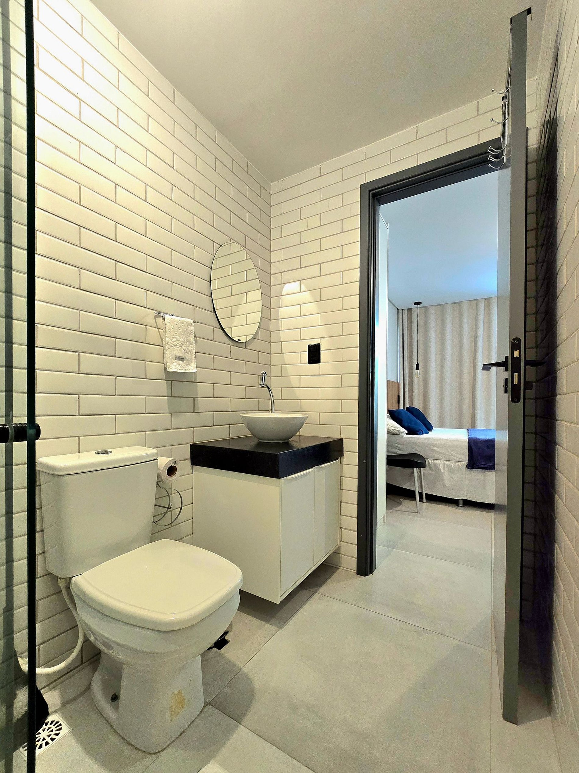 Imagine acordar e caminhar poucos passos até o mar. Depois, subir ao rooftop e tomar um café curtindo a vista da cidade. Esse flat é perfeito pra quem busca praticidade sem abrir mão de conforto, seja para uma escapada de fim de semana ou uma temporada mais longa.