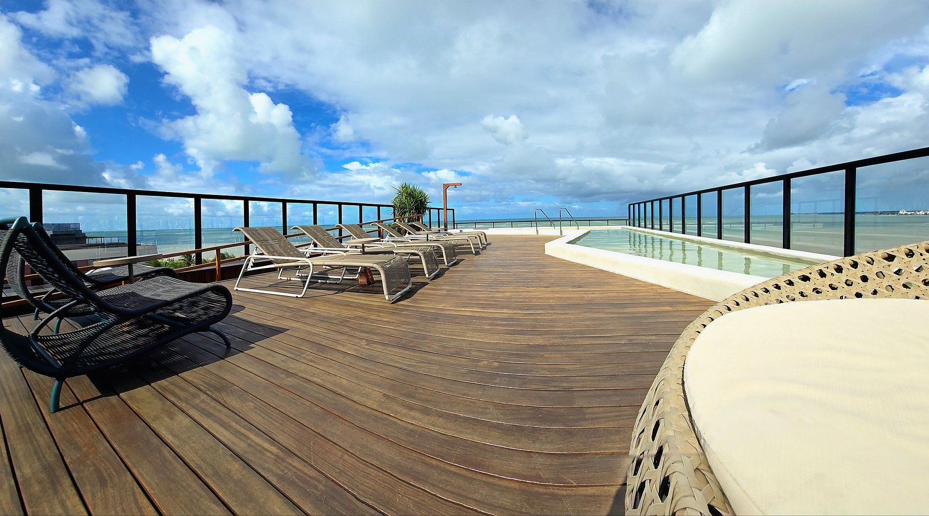 A infraestrutura do prédio acompanha o privilégio da localização: no rooftop, uma piscina com vista panorâmica para o mar, além de uma academia moderna e arejada. No térreo, o conforto de um mercado autosserviço, perfeito para resolver o essencial com poucos passos. O prédio ainda oferece estacionamento rotativo gratuito e portaria 24h, garantindo segurança e comodidade em todos os detalhes.